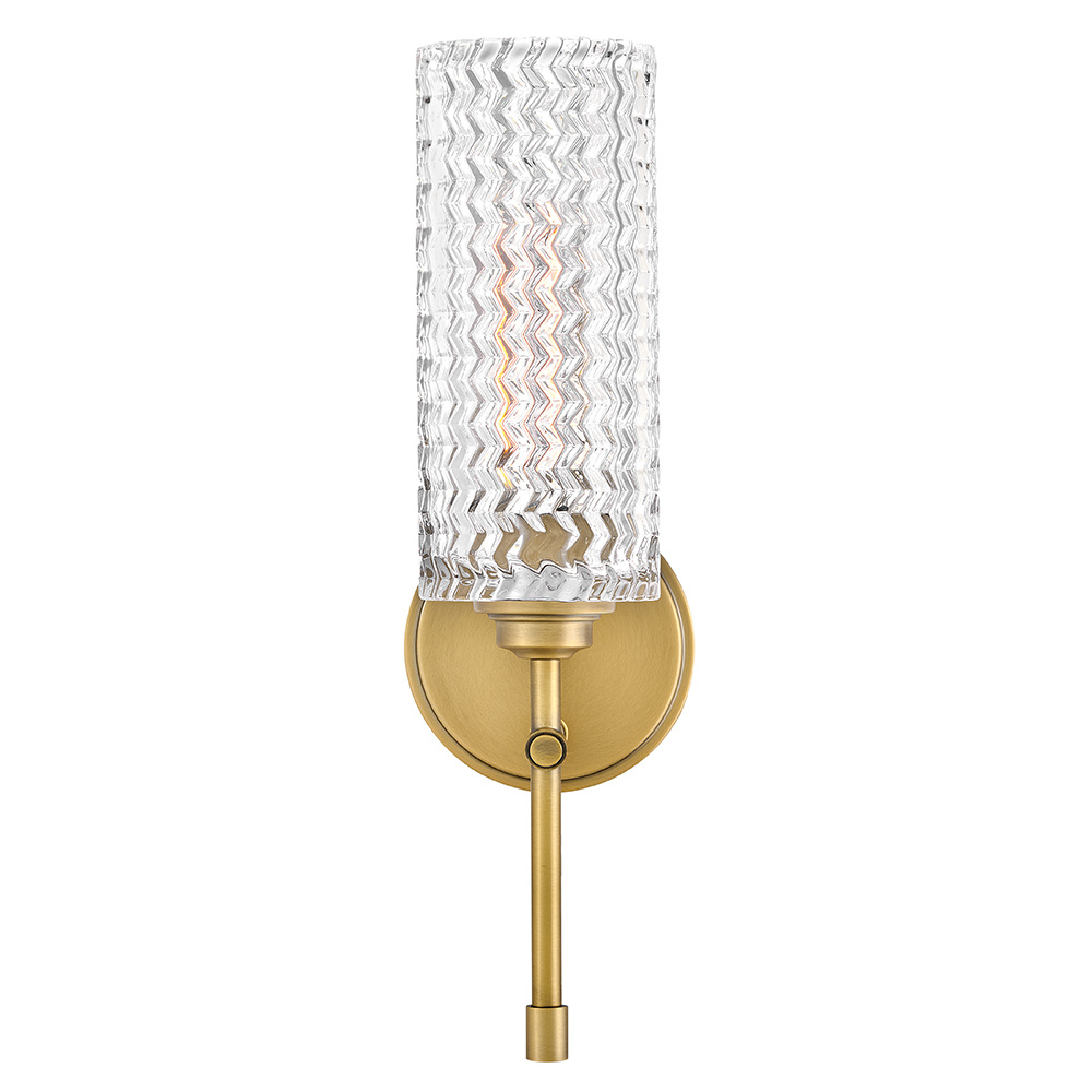 Traditional elegance with a modern edge defines Elle's graceful design. Rich chevron cut glass provides interesting light refraction and is a dramatic focal point whether the light is on or off. The gleaming metal finish adds to the glam design that gives a touch of radiance to any space.