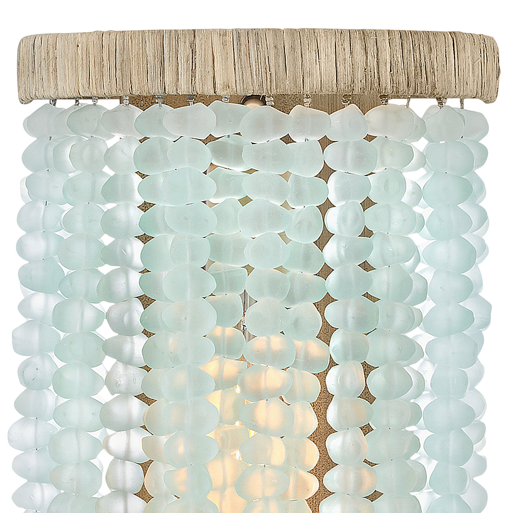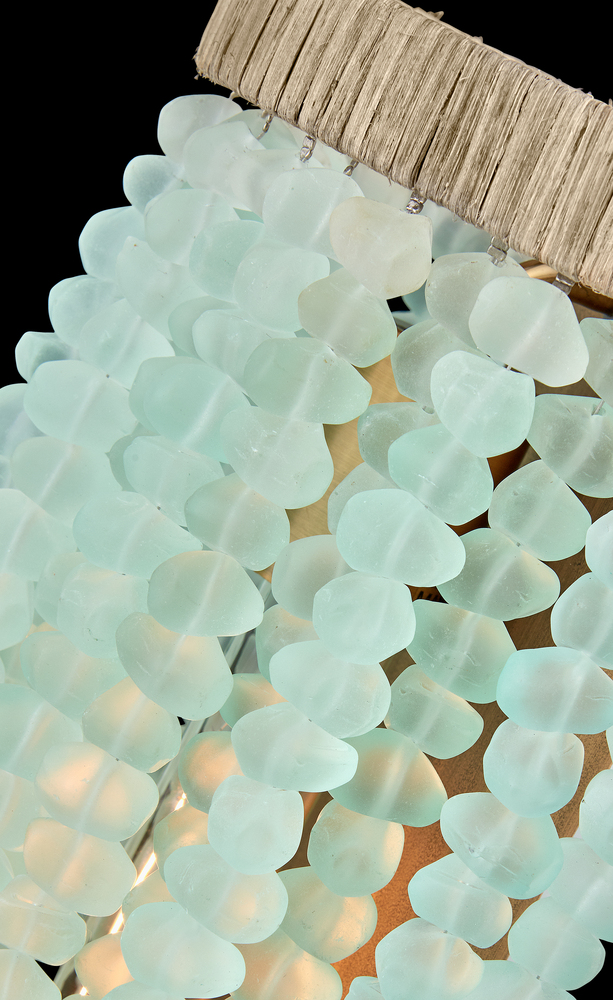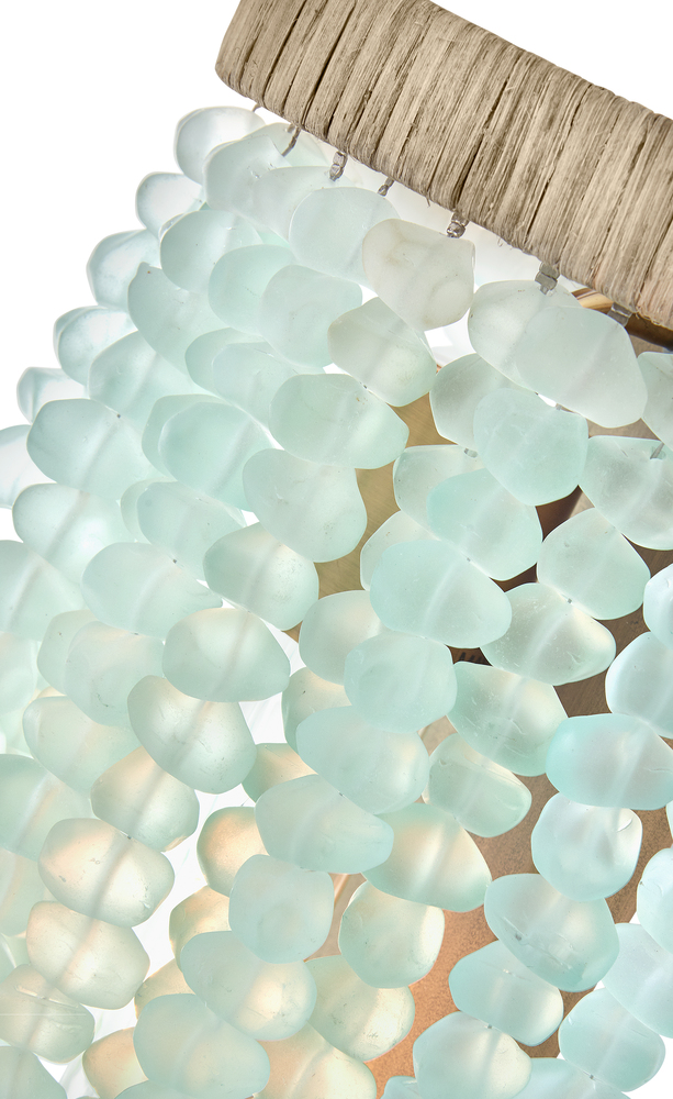 Dune's bohemian chic design showcases strands of soft sea glass combined with a Burnished Gold finish. The designs blend a sophisticated silhouette with organic elements inspired by sun and surf. Dune infuses any space with timeless, mesmerizing elegance.