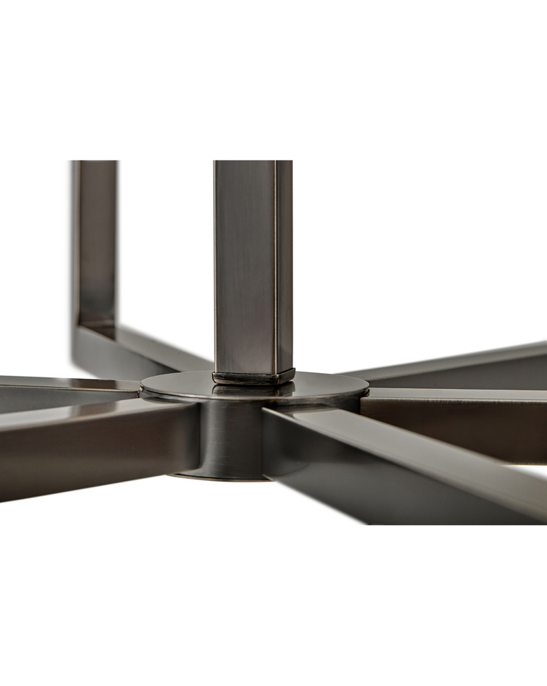 The Ezra family stunningly pairs minimalist elegance with an industrial edge. The strong square arms, sharp angles, and bold silhouette add dimensional appeal, bringing interest to dining rooms, foyers, kitchens, and beyond. Pairing Ezra with a globe-style bulb nails down the transitional, mid-century modern vibe.