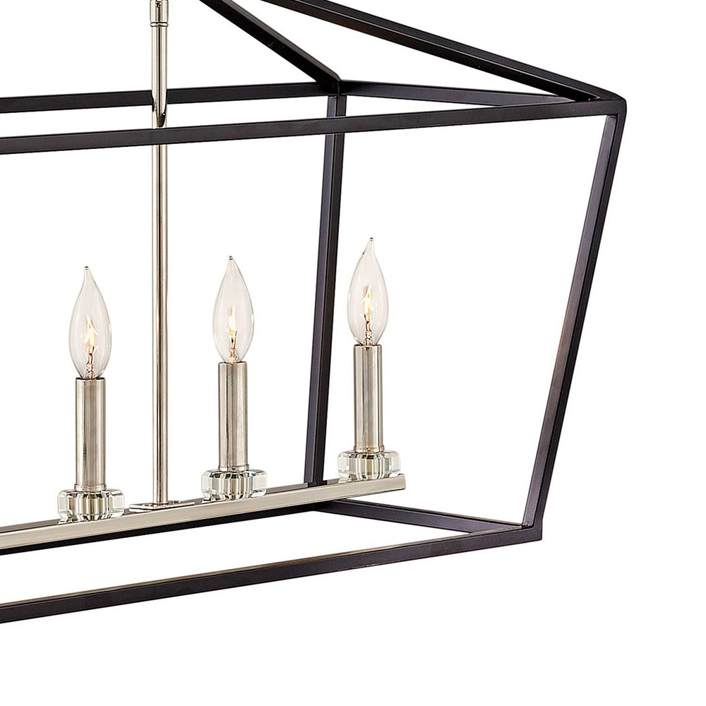 For a classic statement-maker, Stinson hits the mark. A robust open and airy cage, designed for maximum impact in Distressed Brass or Black with Polished Nickel finish, is accompanied by refined sparkling crystal accents to create the perfect mix of traditional appeal and industrial panache.