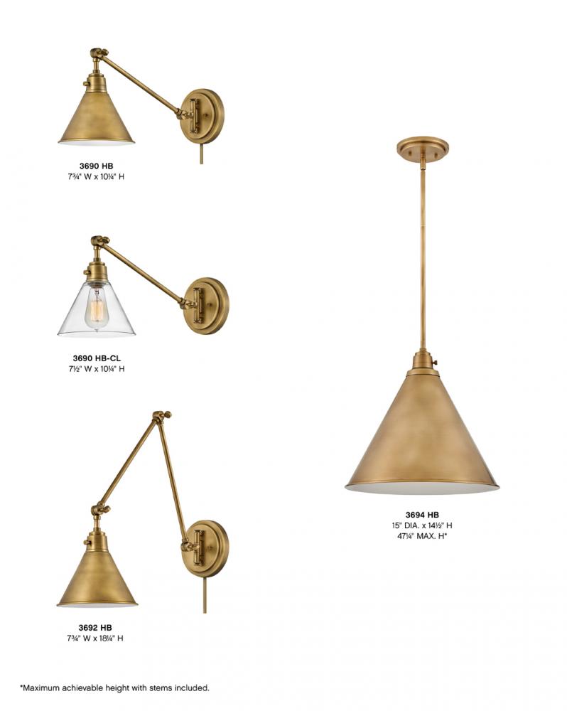 20.5 Extension, Dimensions as shown, Fully adjustable, On/Off switch, Optional Cord Cover HB