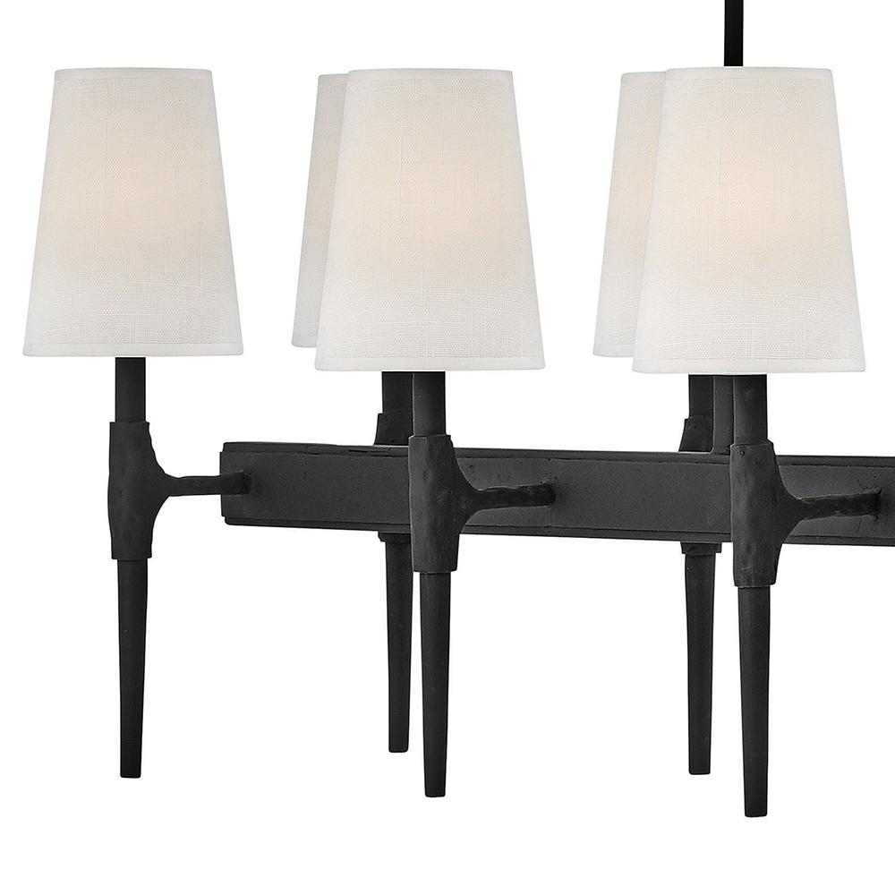 Sleek candle arms topped by softly tapered fabric shades perfectly complement Beaumont's sturdy hand-hammered details. Rustic yet traditional, the stylish transitional silhouette works well in any setting, from classically elegant to chic and modern.