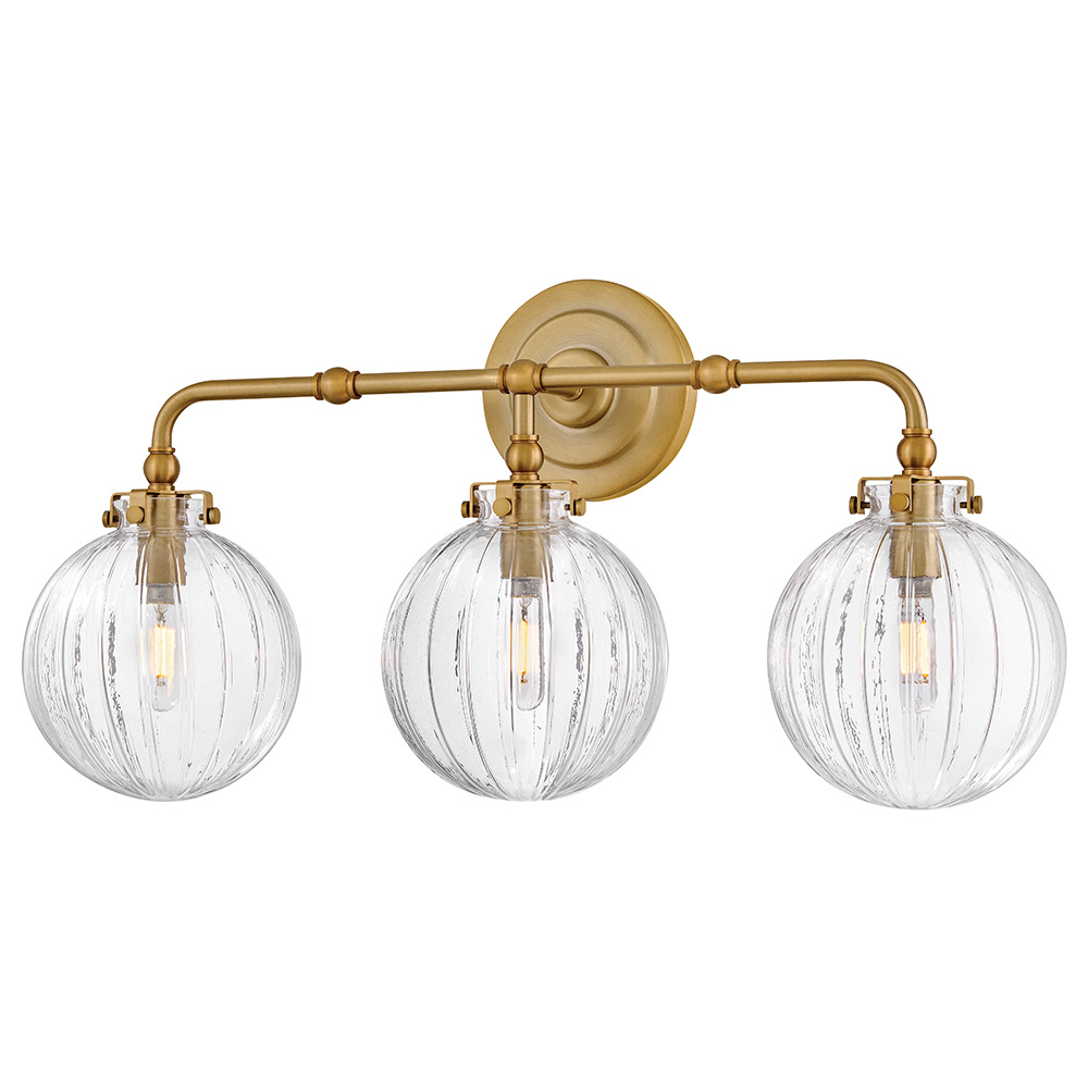 Combining vintage charm with practical design, Helene’s graceful, ribbed glass globes cast beautifully refracted light. Delicate detailing and unique knobs securing each shade are complemented by a rich Lacquered Brass finish to perfectly accentuate your space.