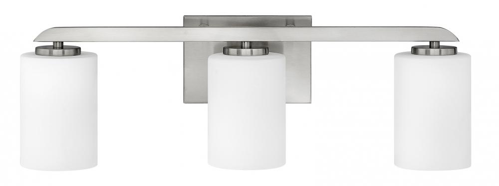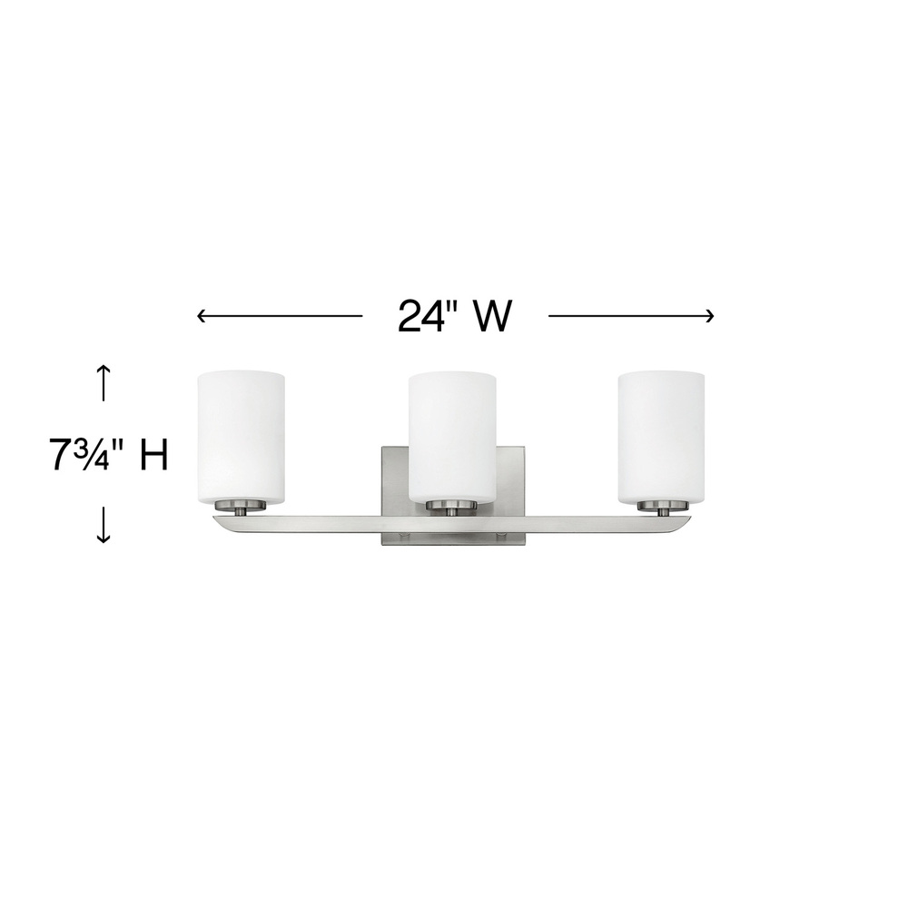 Clean and crisp, Kyra's minimalist design is anchored with a bold yet simple aesthetic. The sleek cross bar ends with a subtle curve for an element of softness. Rich finish options of Brushed Nickel or Polished Nickel complement the elegant etched opal glass.