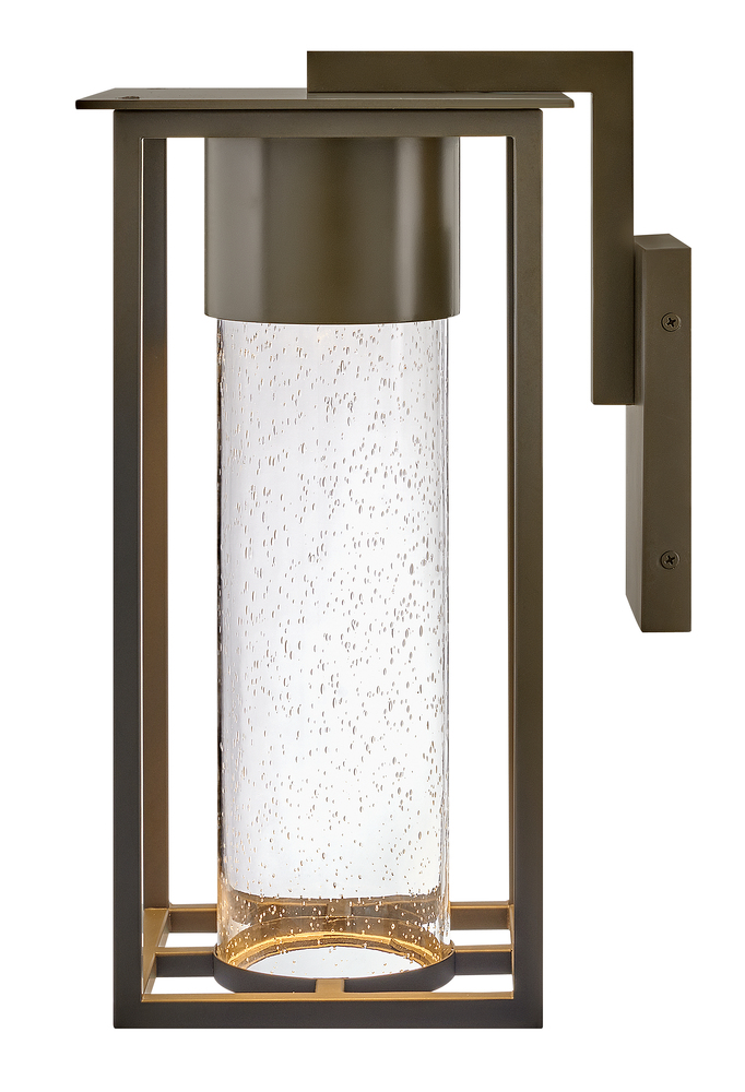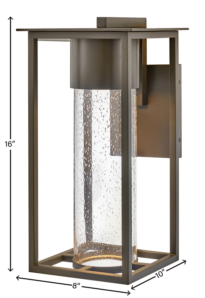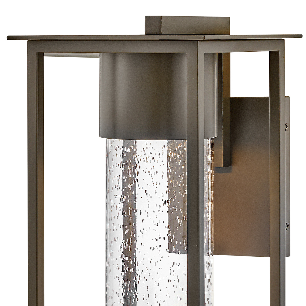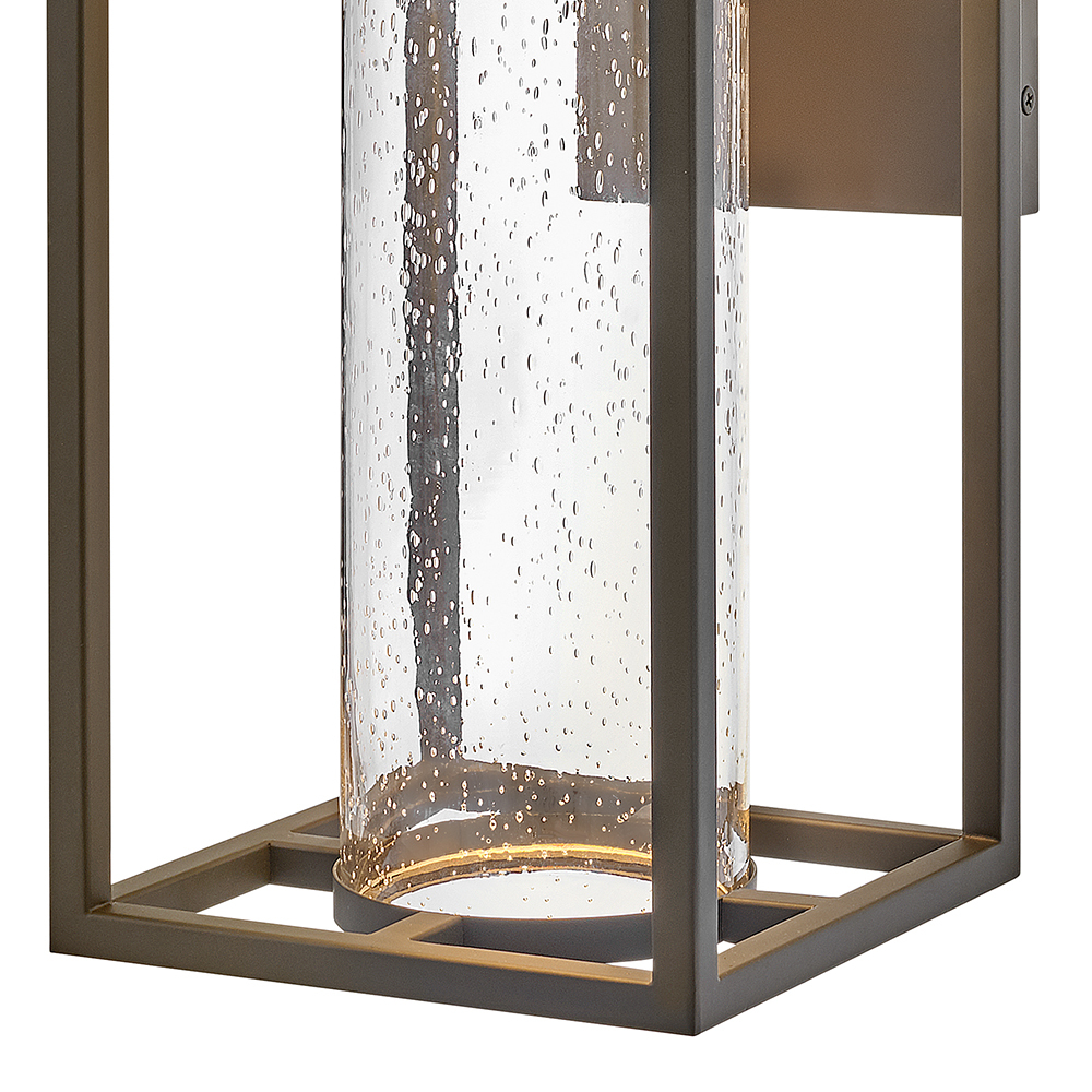 Coen is an instant favorite with timeless design featuresand a modern edge. Clear seedy glass exudes a radiant glow to make a home's exterior shine. This slender frame is constructed of composite materials, and coated with a finish that can withstand harsh elements. Available in a Black or Oil Rubbed Bronze, Coen is also Dark Sky compliant and includes an LED bulb.