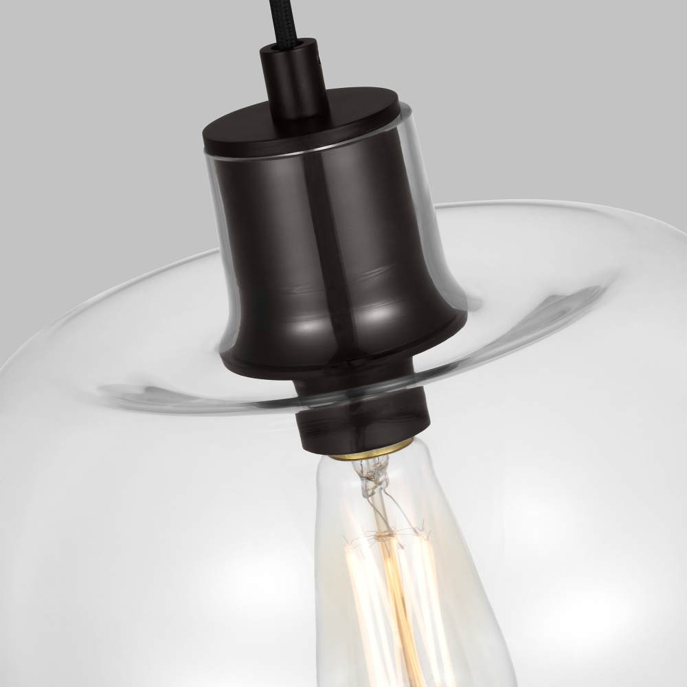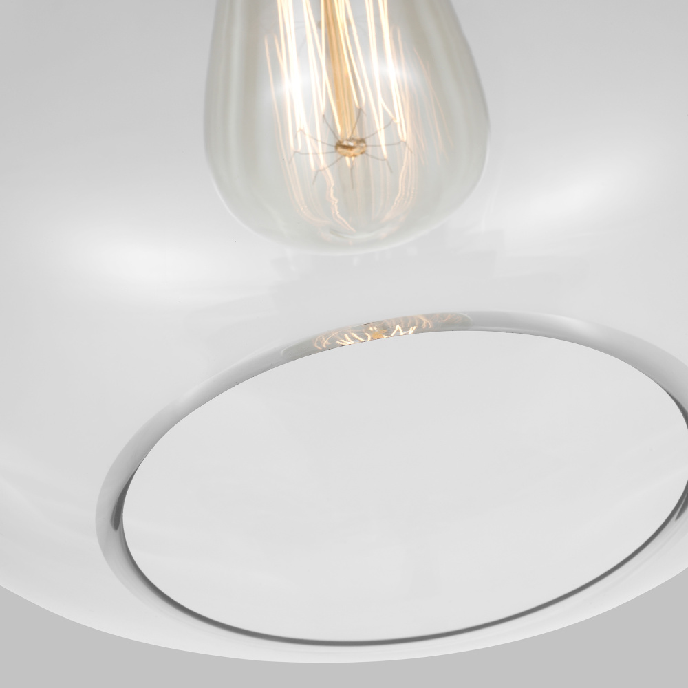 Taking its name and shape from the meaning of apple in Italian. The Mela Pendants, designed by Thomas O'Brien, are part of a group of new modern organic shapes. It started with a hand-blown bottle vase with an apple–like shape. The mix of delicate glass and timeless steel is decidedly modern, with a slight nod to mid-century design.