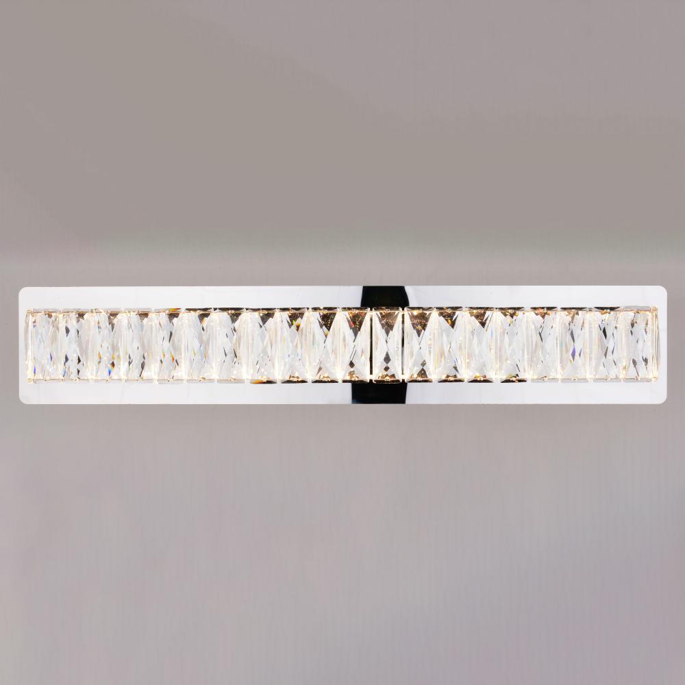 Transform your bathroom into a sanctuary of luxury with the Melrose LED Vanity. Its full backplate and gleaming chrome finish exude a sense of glamour that's both modern and timeless. The integrated LED technology illuminates your space with bright, energy-efficient light while highlighting the vanity's sparkling crystal diffuser, adding an extra layer of elegance to your daily routine.