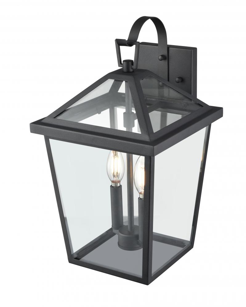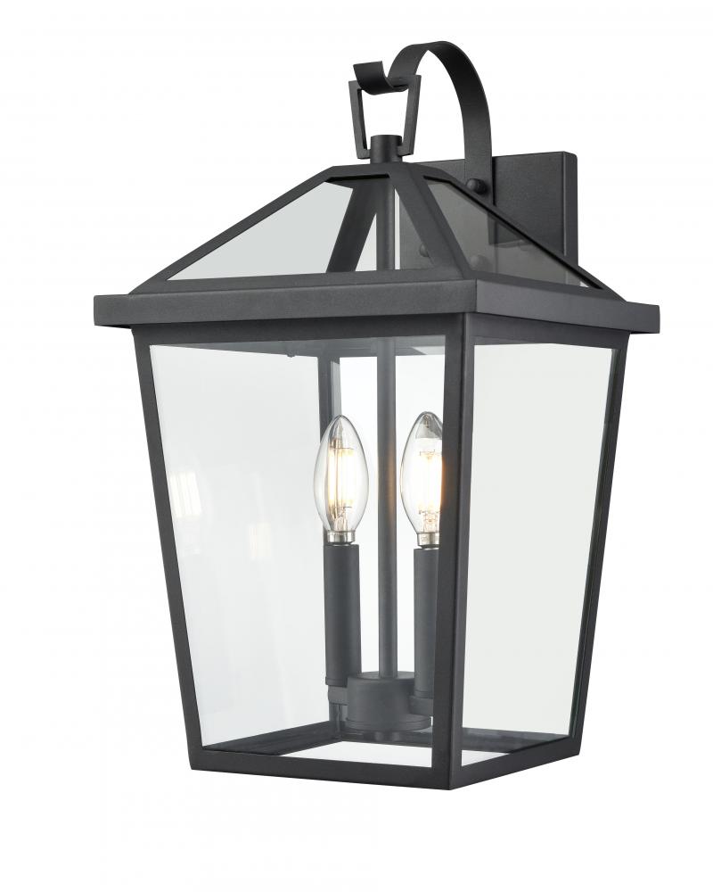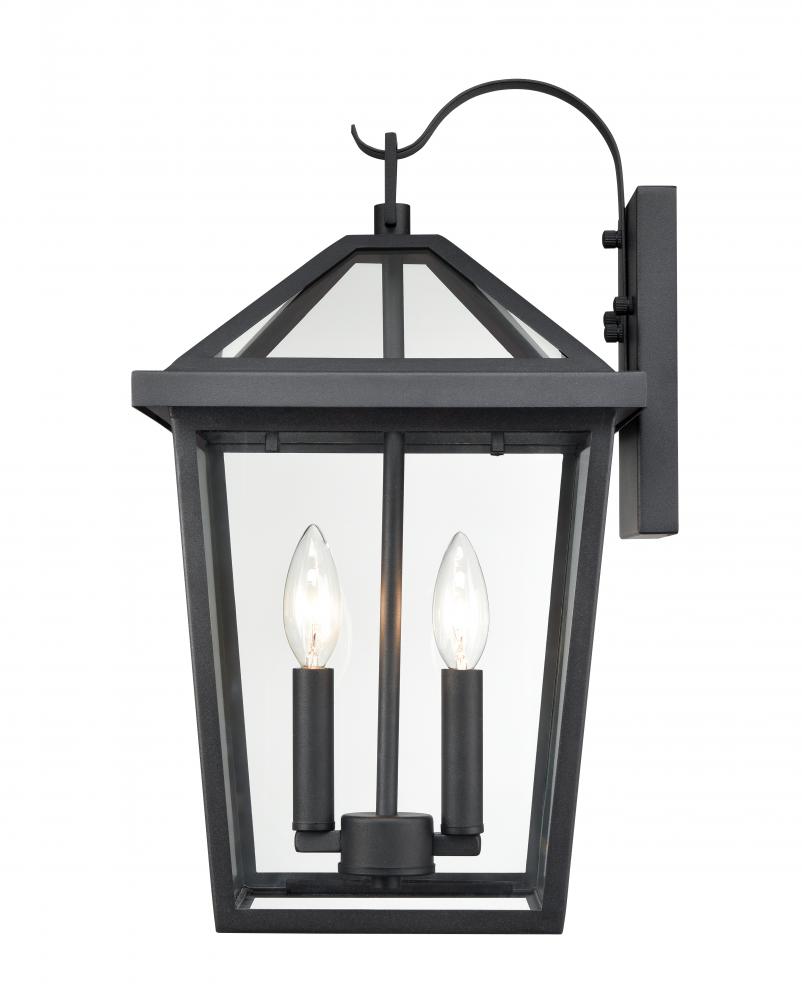 The Mensun Collection of outdoor sconces is characterized by its archetypal Georgian era form with a tapered silhouette and capped with an open canopy, allowing maximum illumination. Available as 1-light, 2-light and 3-light options, the fixtures are finished in textured black and intended to create a stately presence, lighting common areas or flanking entryways and garages.