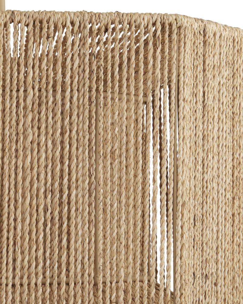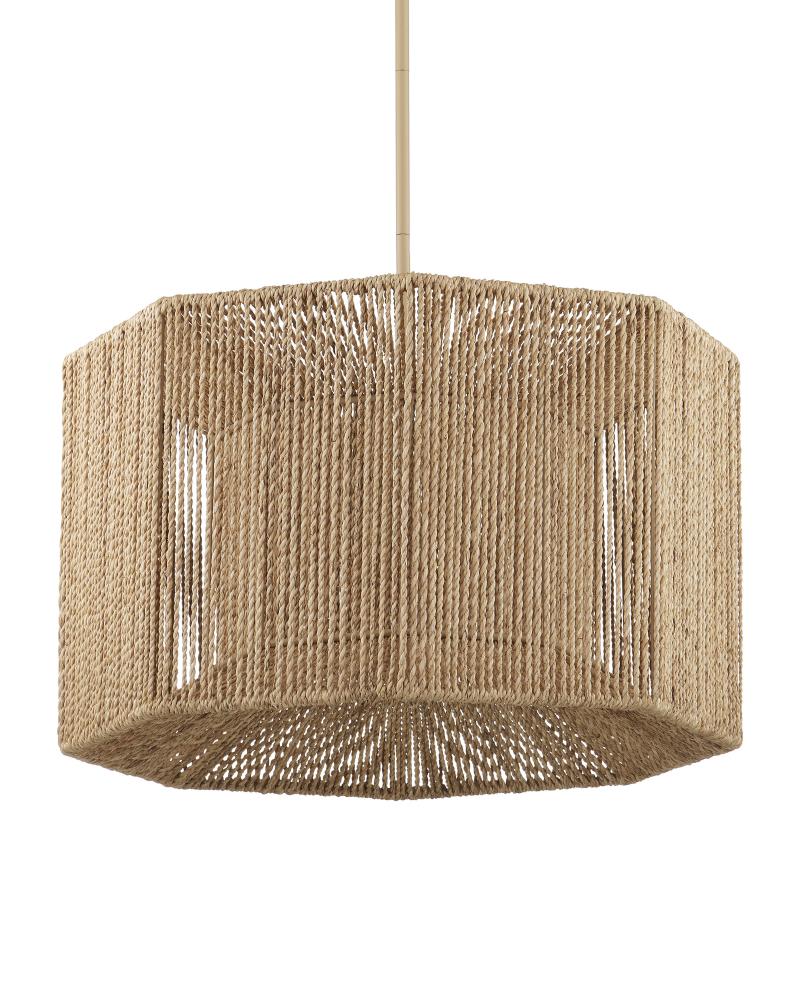 The Mereworth Chandelier has an octagonal wrought iron frame around which natural abaca rope has been painstakingly wrapped to create its shade. The rope chandelier emits a warm glow thanks to the color of the abaca. The material also lends the chandelier a nautical feel that makes it perfect for seaside retreats and oceanfront homes. One of the interesting design attributes about this fixture is how thick the structure is when seen from below. Adjustable from 21.5" to 63.5" with use of included chain/rod kit/cable. If your space calls for a longer drop, additional chain/rods/cable is available for purchase.