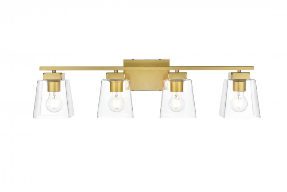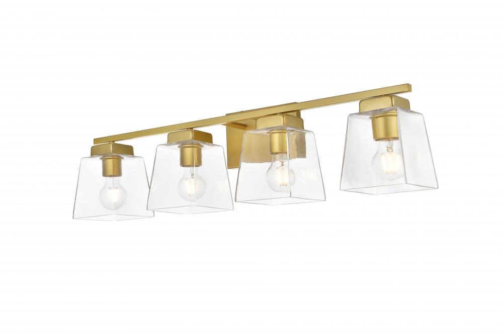 Defined by a sleek metal arm extends to suspend the clear bell glass shade. A contemporary stunner, it shows off the straight line details from the backplate and the streamline thin metal arm. Compatible with dimmers, so you'll have the right amount of light in any given time of the day. Completely versatile, you can place this wall light as an uplight or downlight. Rated for use in damp locations, this will work perfectly over a vanity in your bathroom.