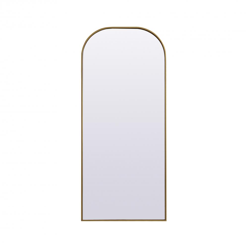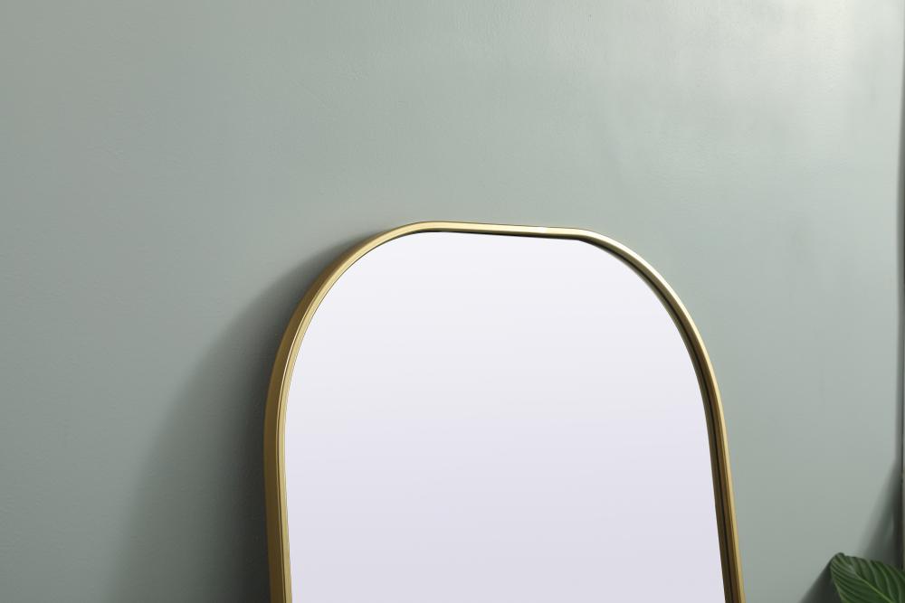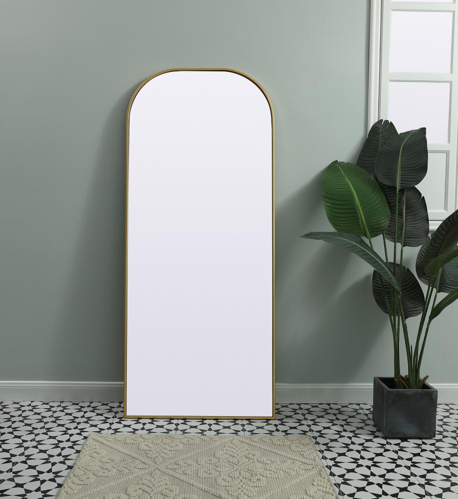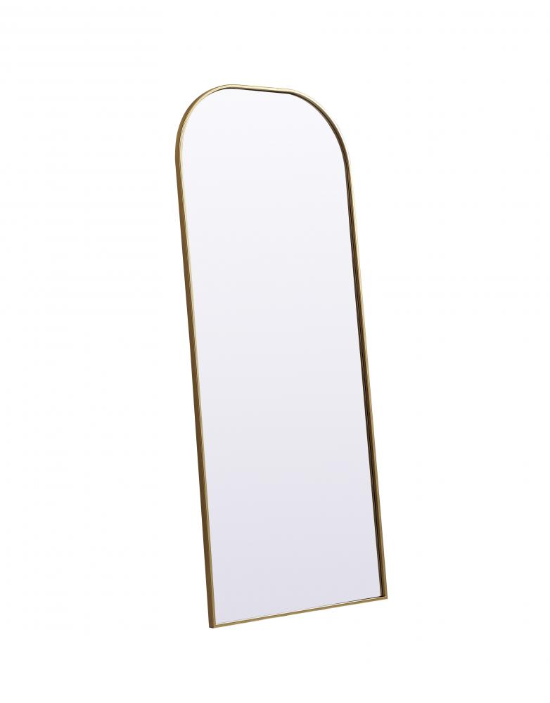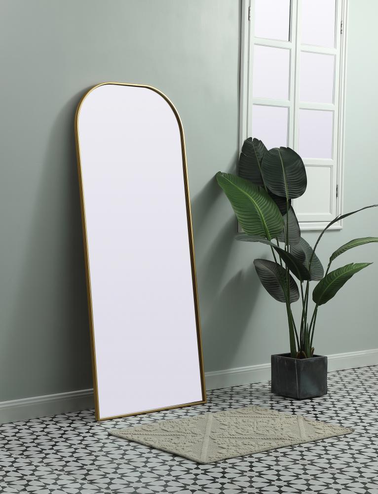 Elongated and modern, its curved profile looks great as a leaning mirror or a hanging mirror by a door. This ultra thin full-length mirror makes a practical addition to any room. Set in an iron frame, this sturdy mirror complements any room. Whether you want to create an illusion of extra space or use it as a functional accent, this mirror will make a big statement over your wall. Comes in three satin finishes in black, brass, or silver.