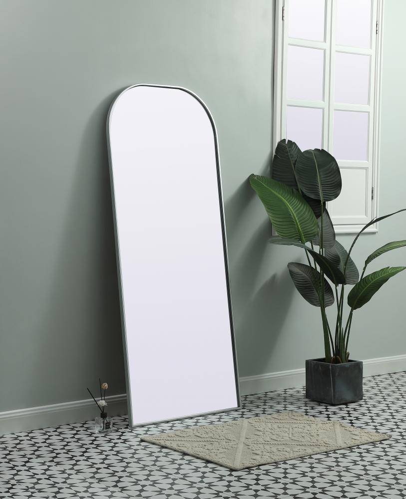 Metal Frame Arch Full Length Mirror 28x66 Inch in Silver