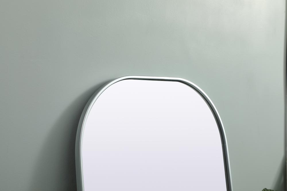 Elongated and modern, its curved profile looks great as a leaning mirror or a hanging mirror by a door. This ultra thin full-length mirror makes a practical addition to any room. Set in an iron frame, this sturdy mirror complements any room. Whether you want to create an illusion of extra space or use it as a functional accent, this mirror will make a big statement over your wall. Comes in three satin finishes in black, brass, or silver.