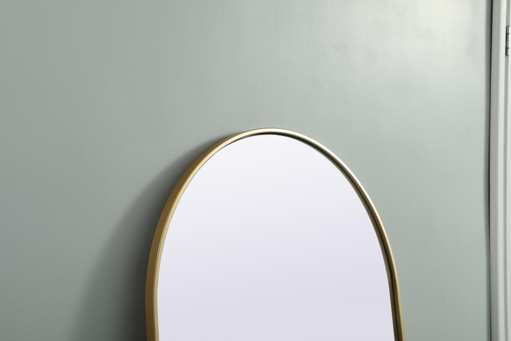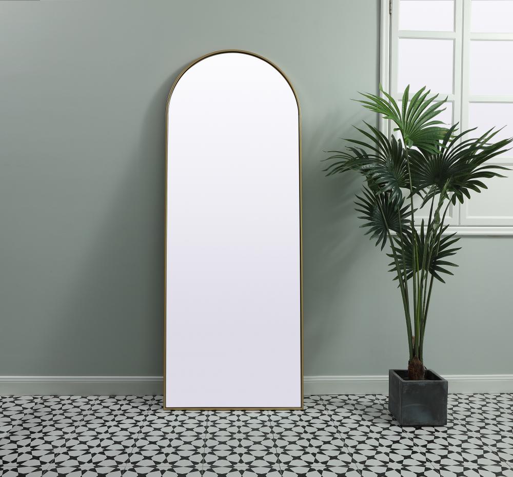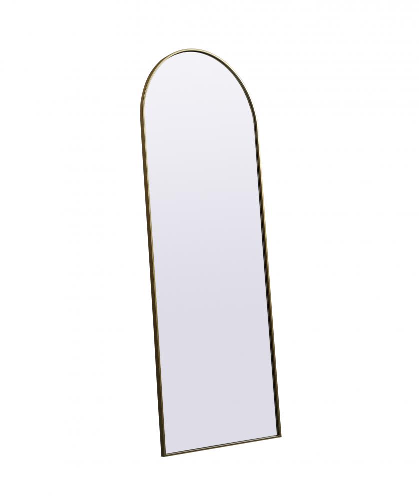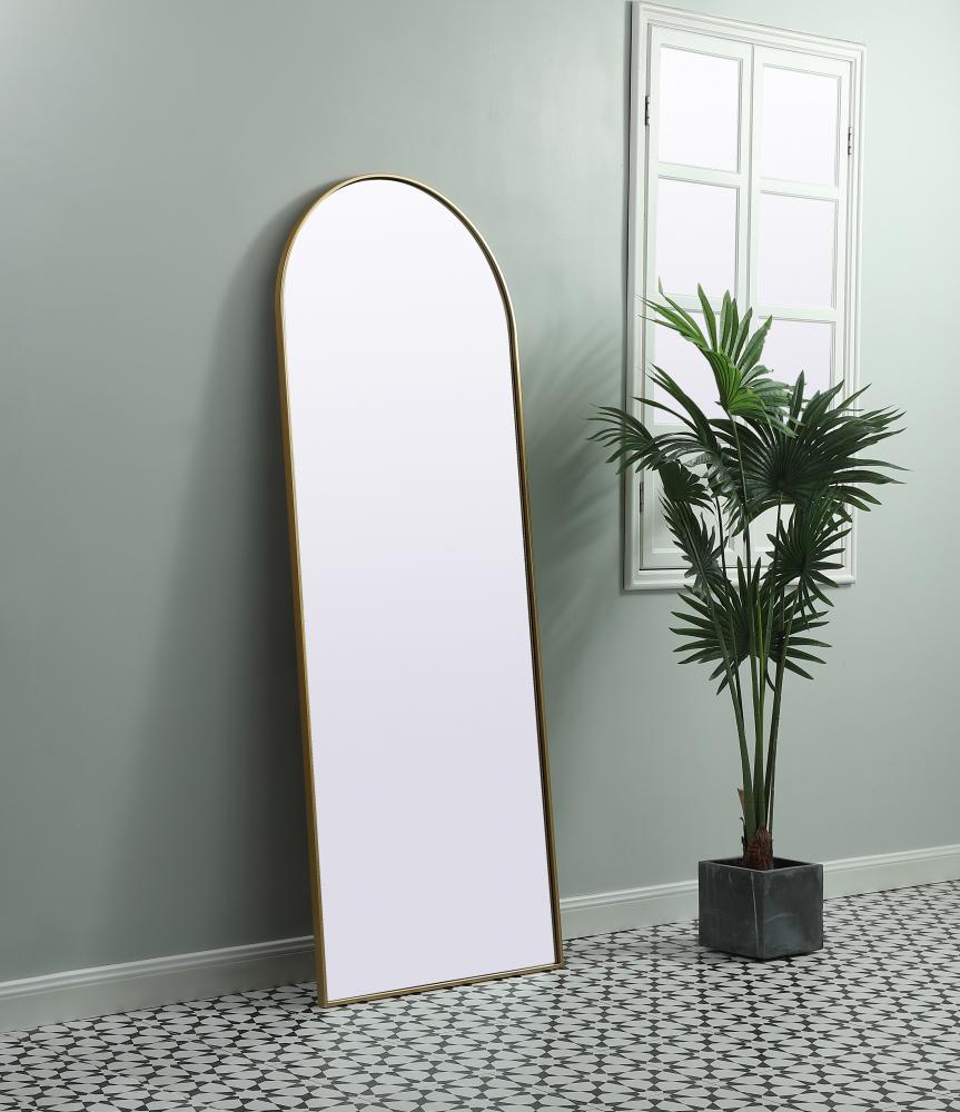 Instantly open up any space in your home with this minimalist floor mounted mirror. Crafted of metal, this mirror strikes a round silhouette. Its slender, clean-lined frame sports a classic finish, while the glass mirror within features a flat, for a brilliant reflection, letting the light bounce off to expand your space. Designed in an arch shape, this metal-frame mirror showcases in the three available satin finishes in black, brass, or silver. Mount this work of art in any room of your choice or lean against the wall for added visual impact.