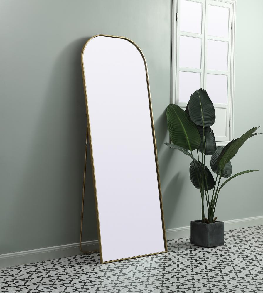 Add a rounded-top full length mirror to your home decor to elevate it to the next level. A full-length mirror is the perfect wall decor choice for any room or living space. This accessory is perfect for adoring full outfits in the full length of your body or providing a full view of yourself in any room, perfect for dressing areas and even bathrooms. Not only does this full-length iron frame large wall mirror provide practical uses, but it also acts as a beautiful addition to any home decor with its sleek, modern design. The mirror can be leaned to the wall, free-standing, or can be installed vertically or horizontally on the wall. Available in three satin finishes: black, brass, and silver.