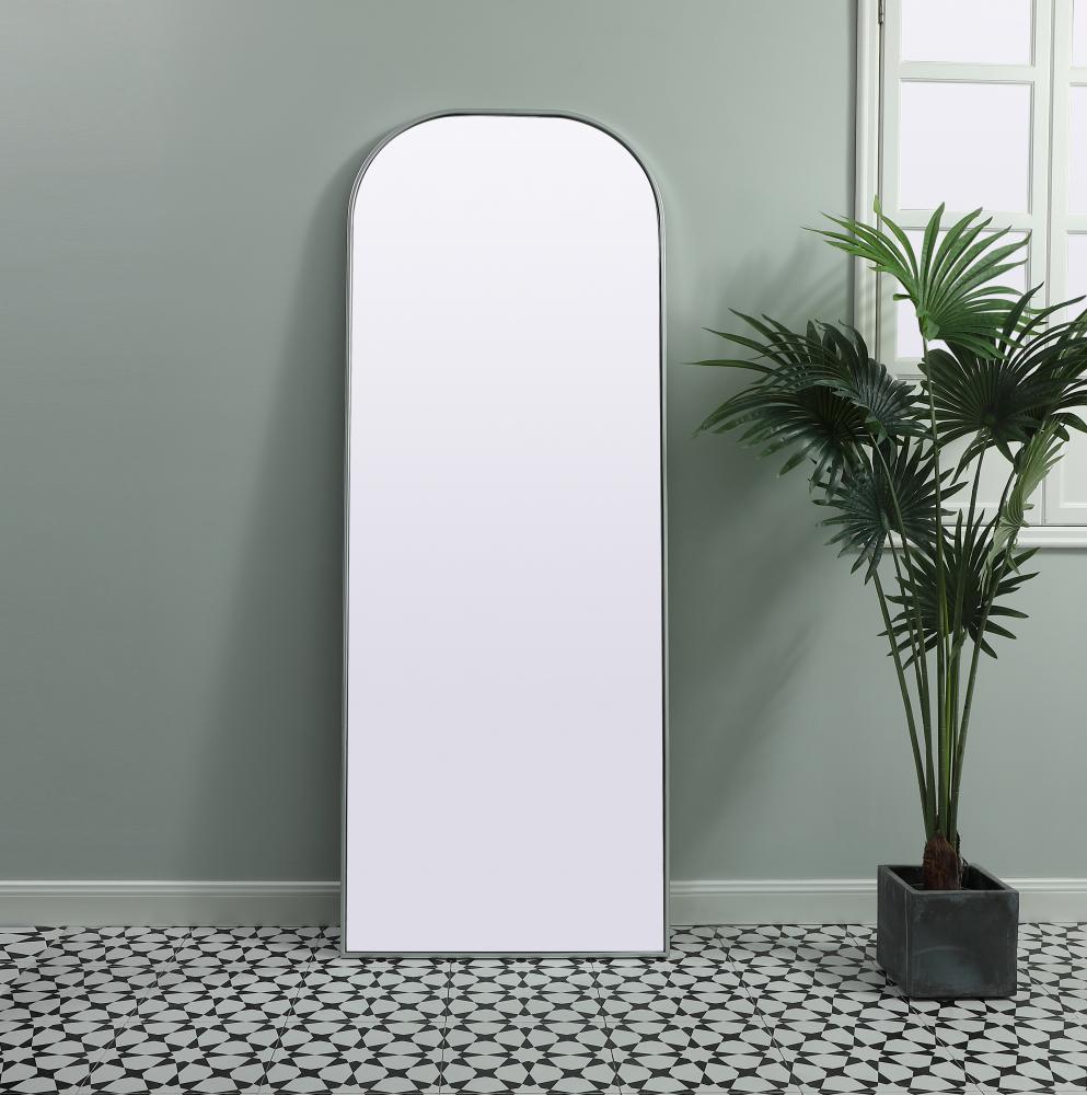 Metal Frame Arch Full Length Mirror 28x74 Inch in Silver