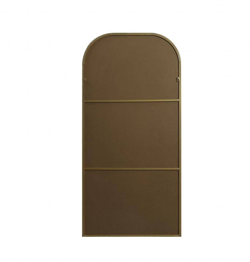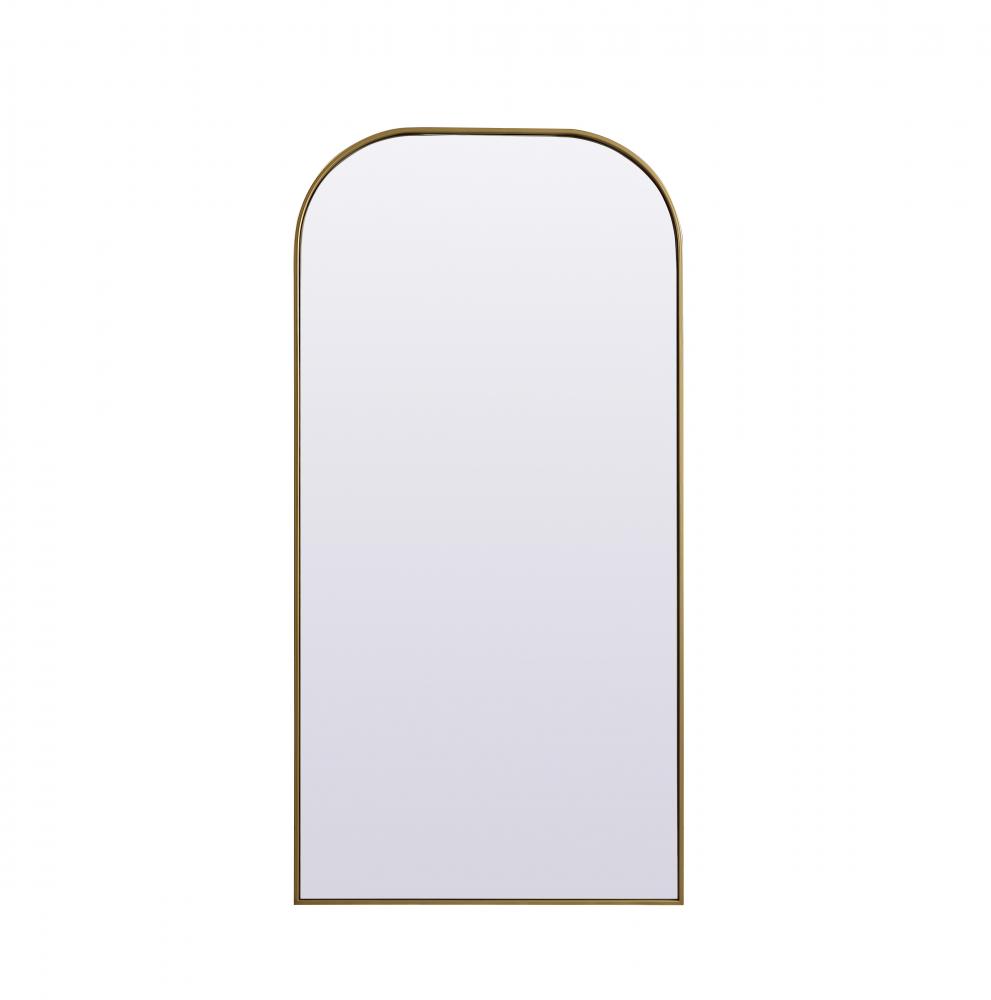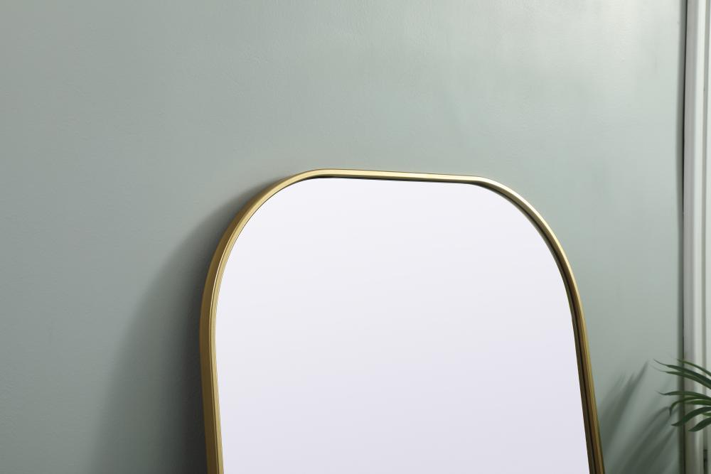 Elongated and modern, its curved profile looks great as a leaning mirror or a hanging mirror by a door. This ultra thin full-length mirror makes a practical addition to any room. Set in an iron frame, this sturdy mirror complements any room. Whether you want to create an illusion of extra space or use it as a functional accent, this mirror will make a big statement over your wall. Comes in three satin finishes in black, brass, or silver.