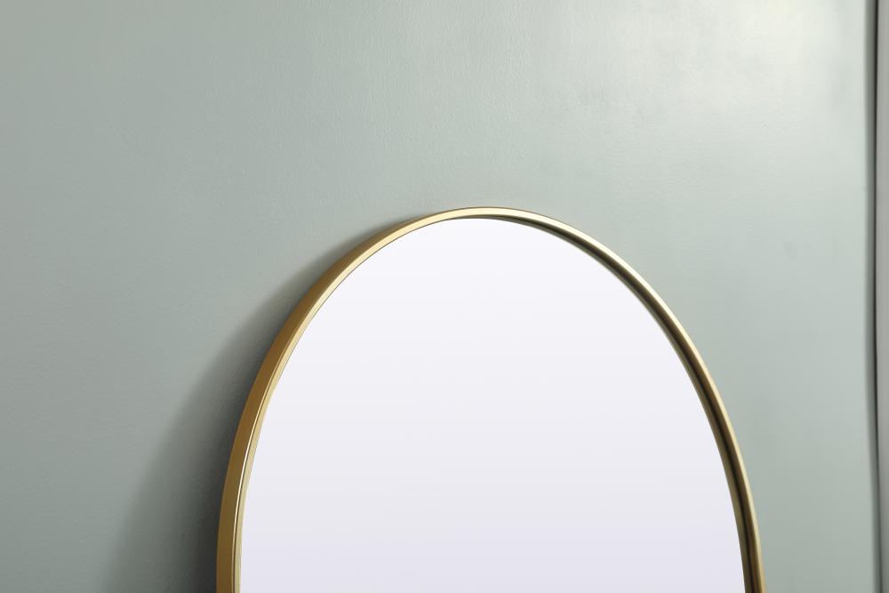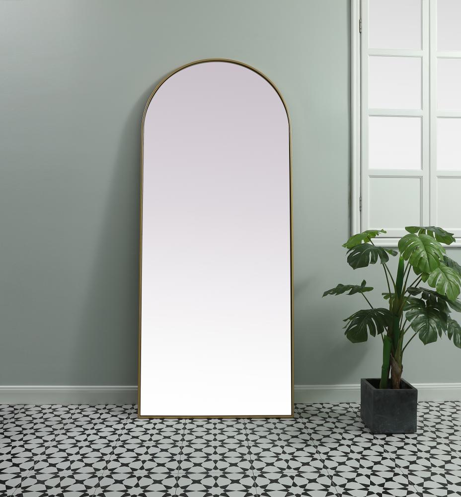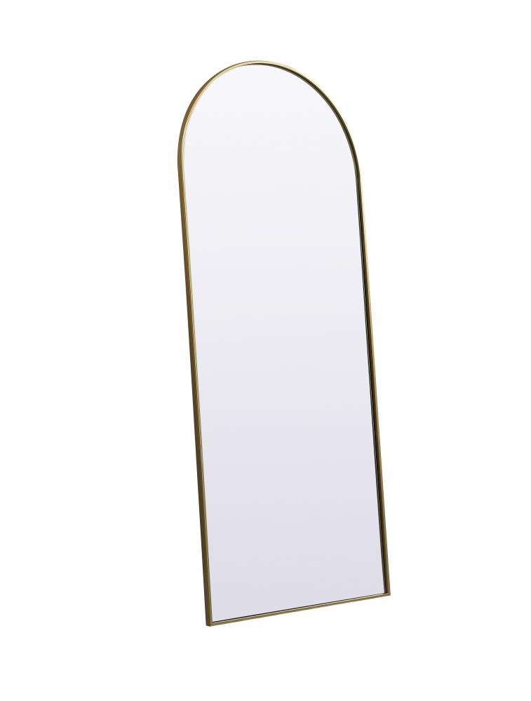 Instantly open up any space in your home with this minimalist floor mounted mirror. Crafted of metal, this mirror strikes a round silhouette. Its slender, clean-lined frame sports a classic finish, while the glass mirror within features a flat, for a brilliant reflection, letting the light bounce off to expand your space. Designed in an arch shape, this metal-frame mirror showcases in the three available satin finishes in black, brass, or silver. Mount this work of art in any room of your choice or lean against the wall for added visual impact.