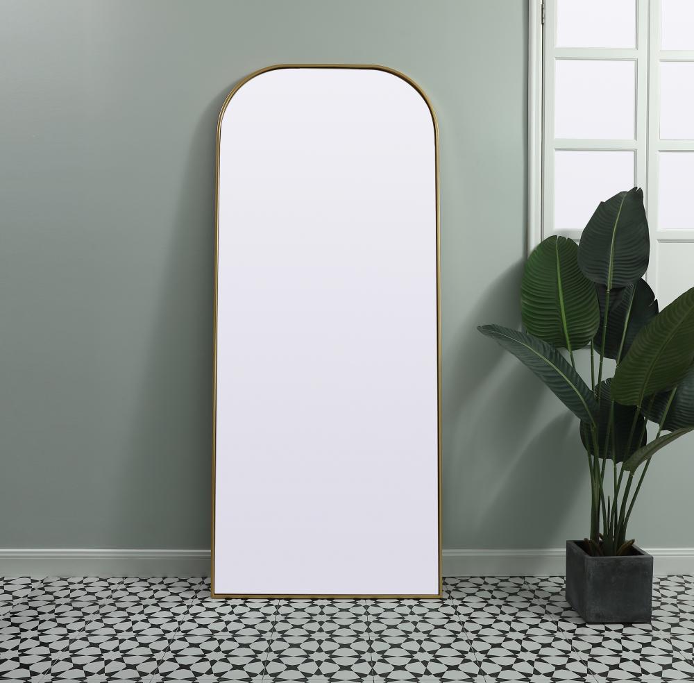Metal Frame Arch Full Length Mirror 32x76 Inch in Brass
