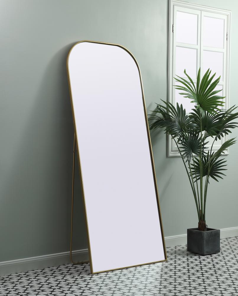 Add a rounded-top full length mirror to your home decor to elevate it to the next level. A full-length mirror is the perfect wall decor choice for any room or living space. This accessory is perfect for adoring full outfits in the full length of your body or providing a full view of yourself in any room, perfect for dressing areas and even bathrooms. Not only does this full-length iron frame large wall mirror provide practical uses, but it also acts as a beautiful addition to any home decor with its sleek, modern design. The mirror can be leaned to the wall, free-standing, or can be installed vertically or horizontally on the wall. Available in three satin finishes: black, brass, and silver.