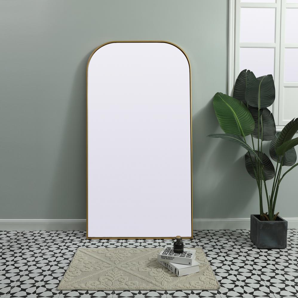 Metal Frame Arch Full Length Mirror 35x66 Inch in Brass
