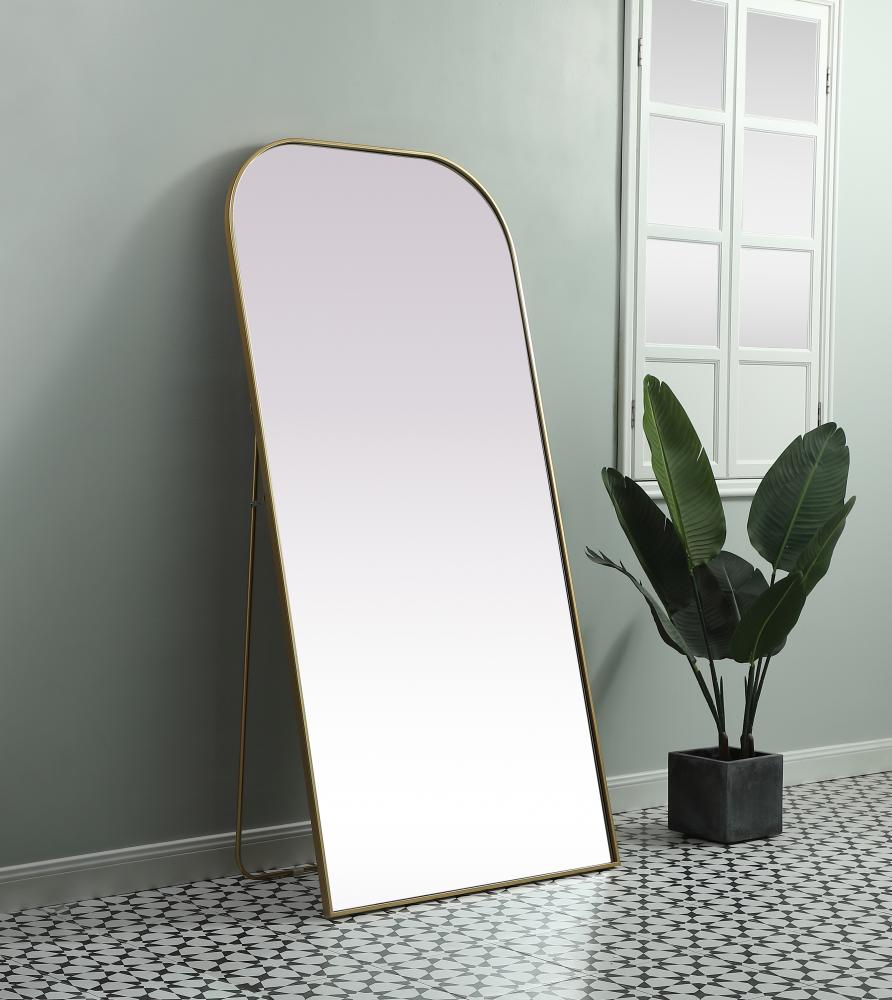 Metal Frame Arch Full Length Mirror 35x72 Inch in Brass