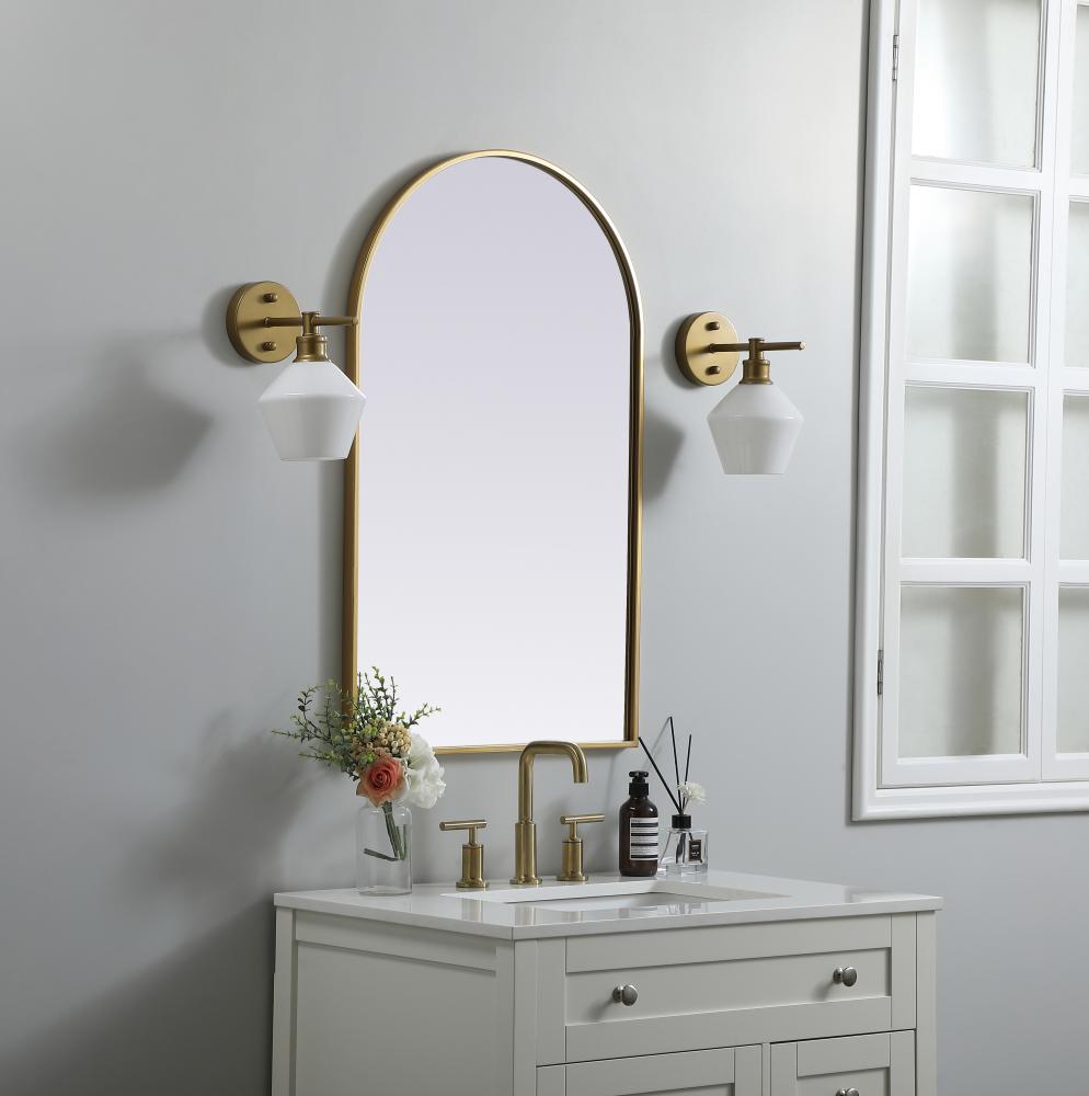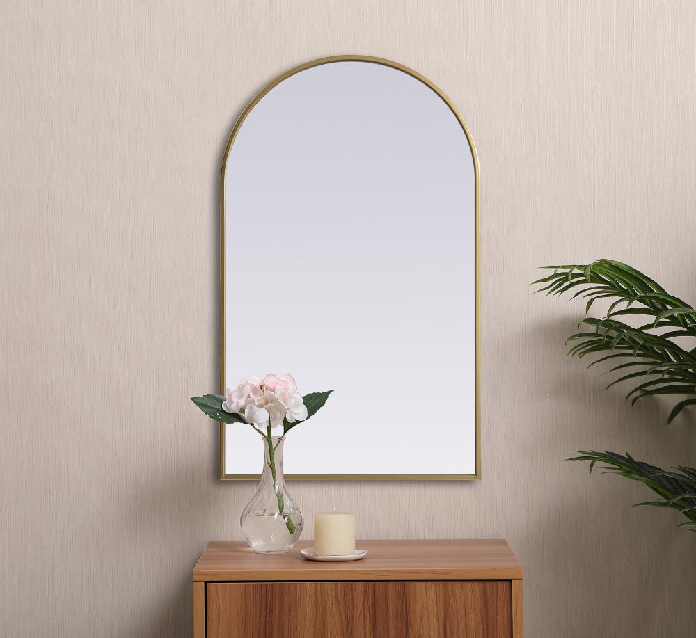 Metal Frame Arch Mirror 22x36 Inch in Brass