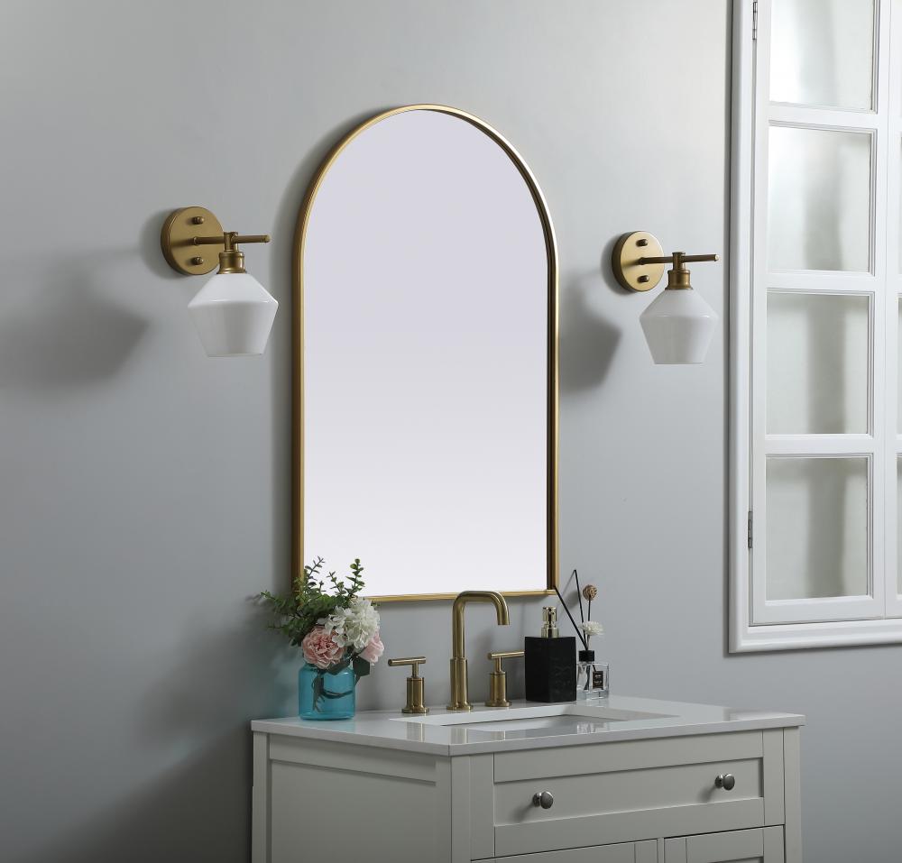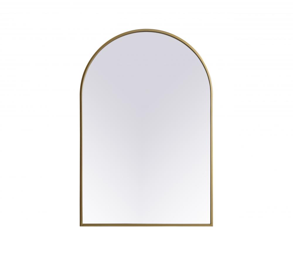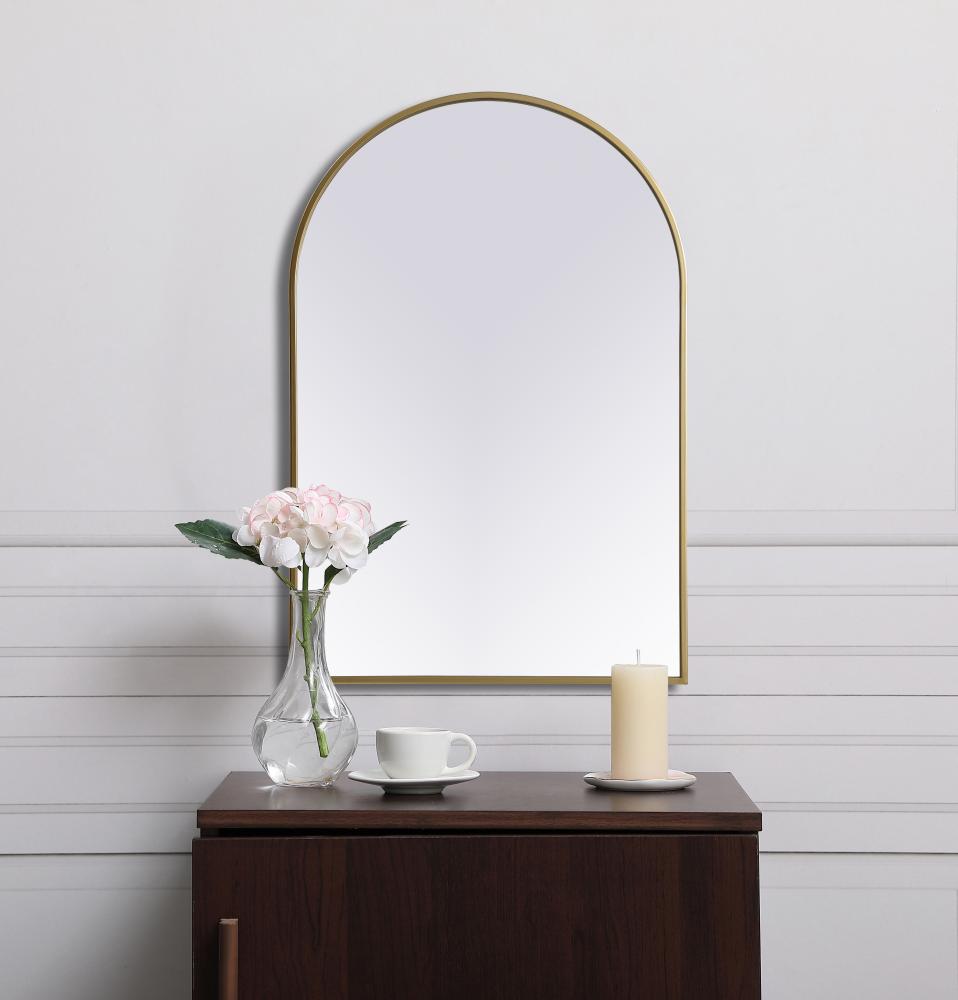 Instantly open up any space in your home with this minimalist wall-mounted mirror. Crafted of metal, this mirror strikes a round silhouette. Its slender, clean-lined frame sports a classic finish, while the glass mirror within features a flat, for a brilliant reflection, letting the light bounce off to expand your space. Designed in an arch shape, this metal-frame mirror showcases in the three available satin finishes in black, brass, or silver. Mount this work of art in any room of your choice for added visual impact.