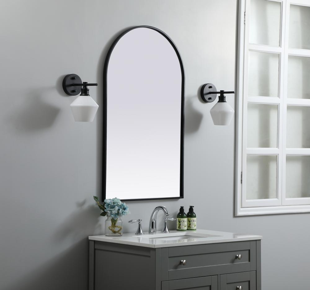 Instantly open up any space in your home with this minimalist wall-mounted mirror. Crafted of metal, this mirror strikes a round silhouette. Its slender, clean-lined frame sports a classic finish, while the glass mirror within features a flat, for a brilliant reflection, letting the light bounce off to expand your space. Designed in an arch shape, this metal-frame mirror showcases in the three available satin finishes in black, brass, or silver. Mount this work of art in any room of your choice for added visual impact.