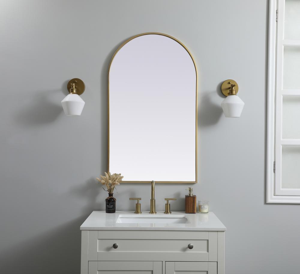Metal Frame Arch Mirror 24x40 Inch in Brass
