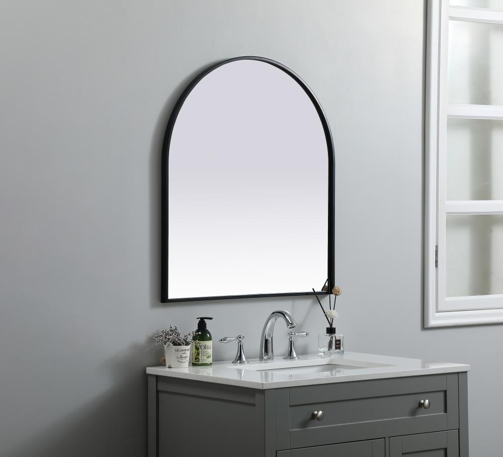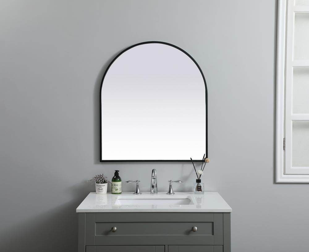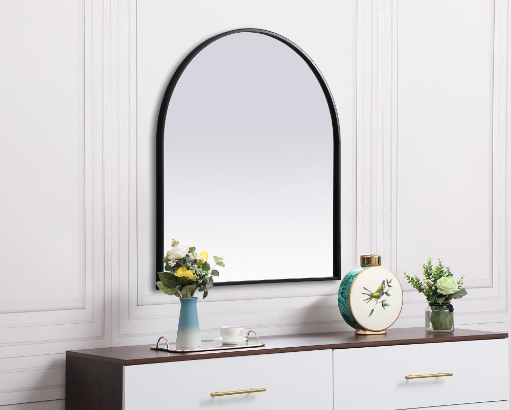 Metal Frame Arch Mirror 27x30 Inch in Black