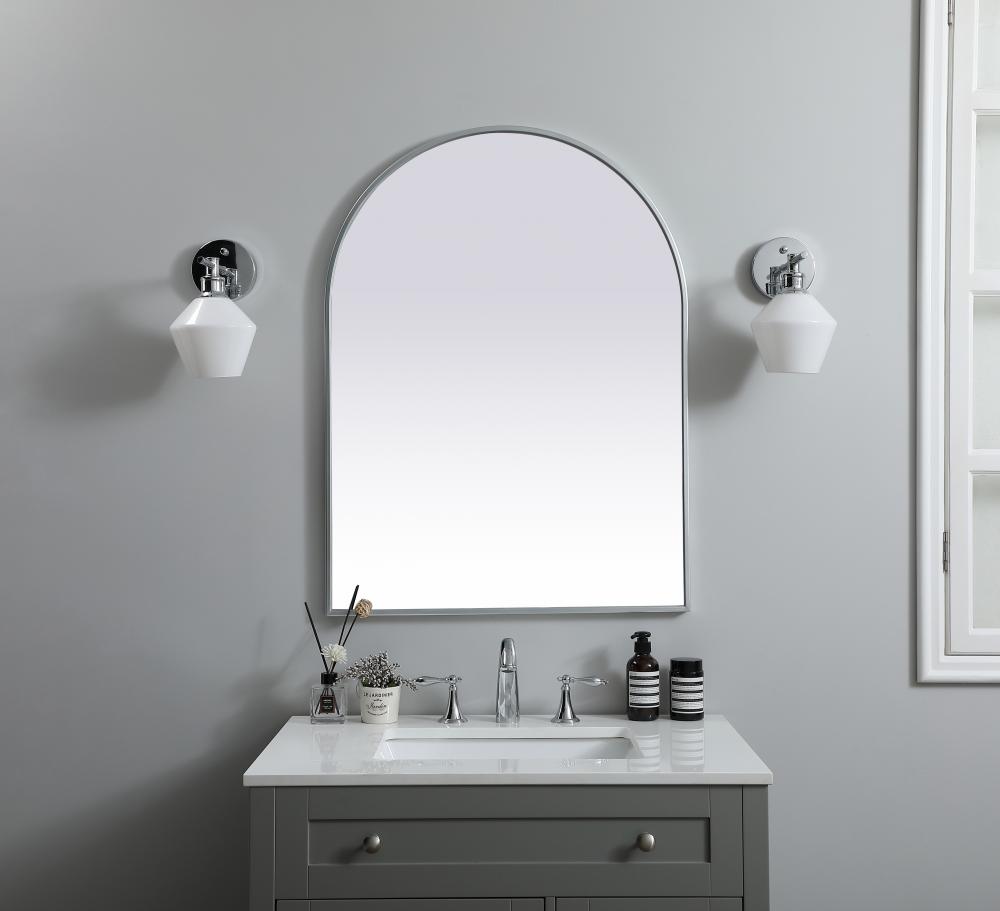 Instantly open up any space in your home with this minimalist wall-mounted mirror. Crafted of metal, this mirror strikes a round silhouette. Its slender, clean-lined frame sports a classic finish, while the glass mirror within features a flat, for a brilliant reflection, letting the light bounce off to expand your space. Designed in an arch shape, this metal-frame mirror showcases in the three available satin finishes in black, brass, or silver. Mount this work of art in any room of your choice for added visual impact.