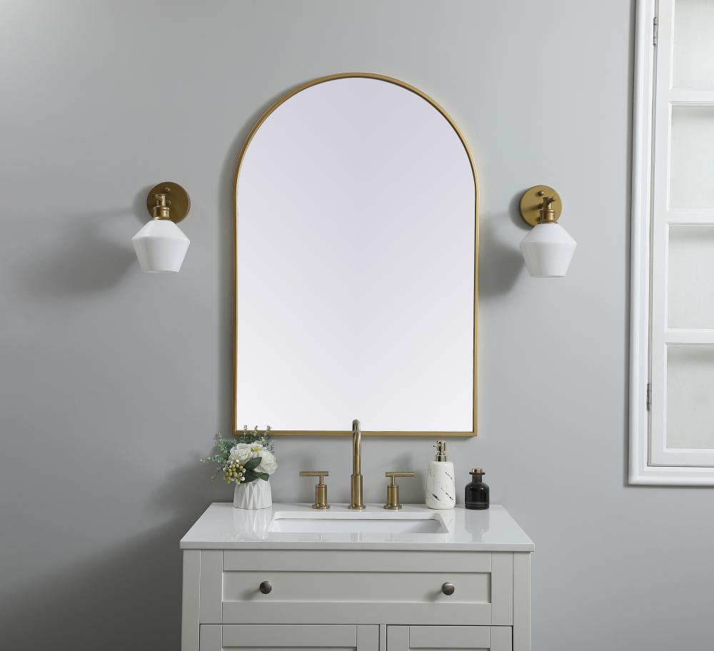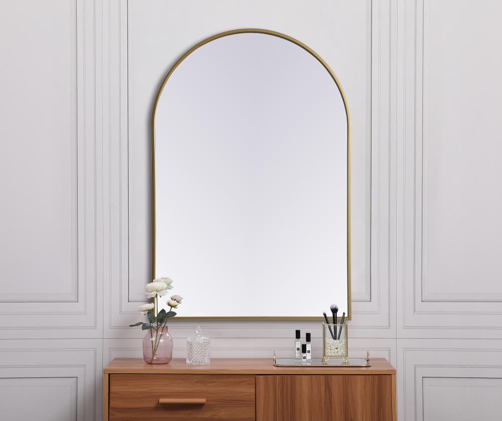 Metal Frame Arch Mirror 27x40 Inch in Brass