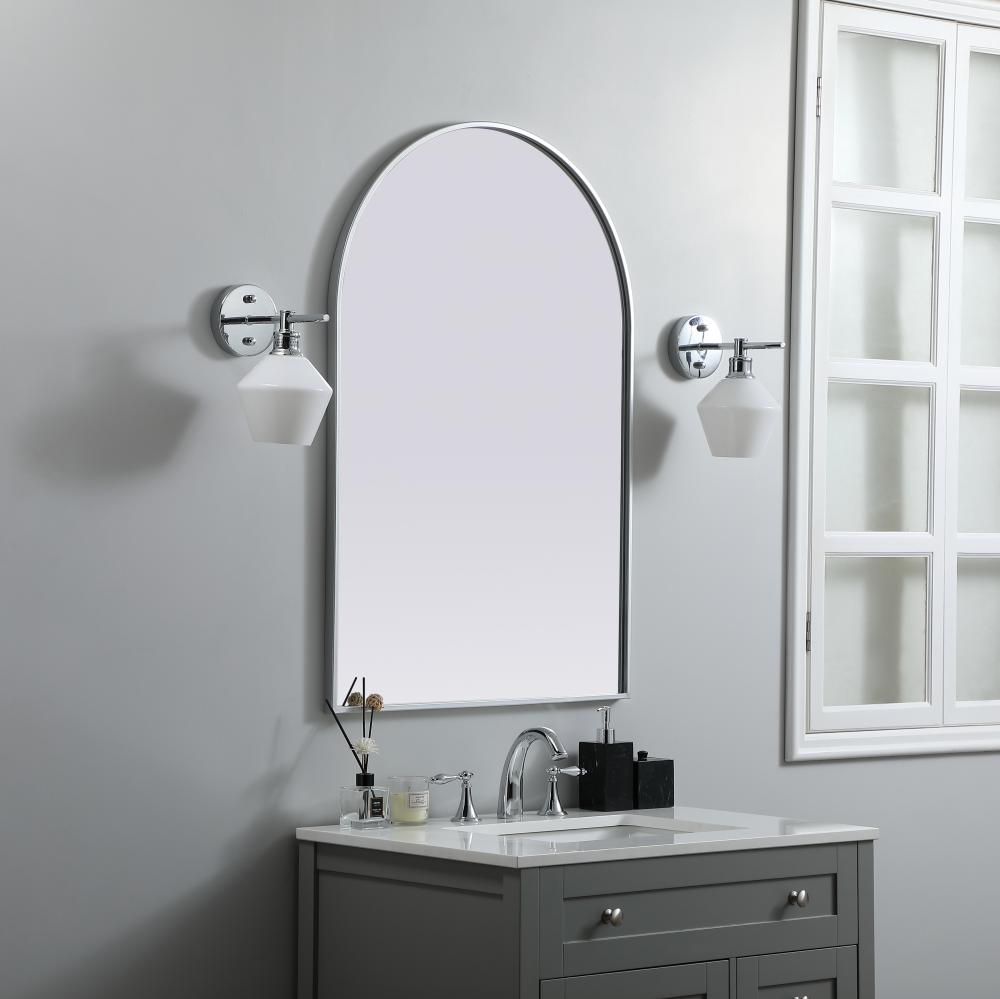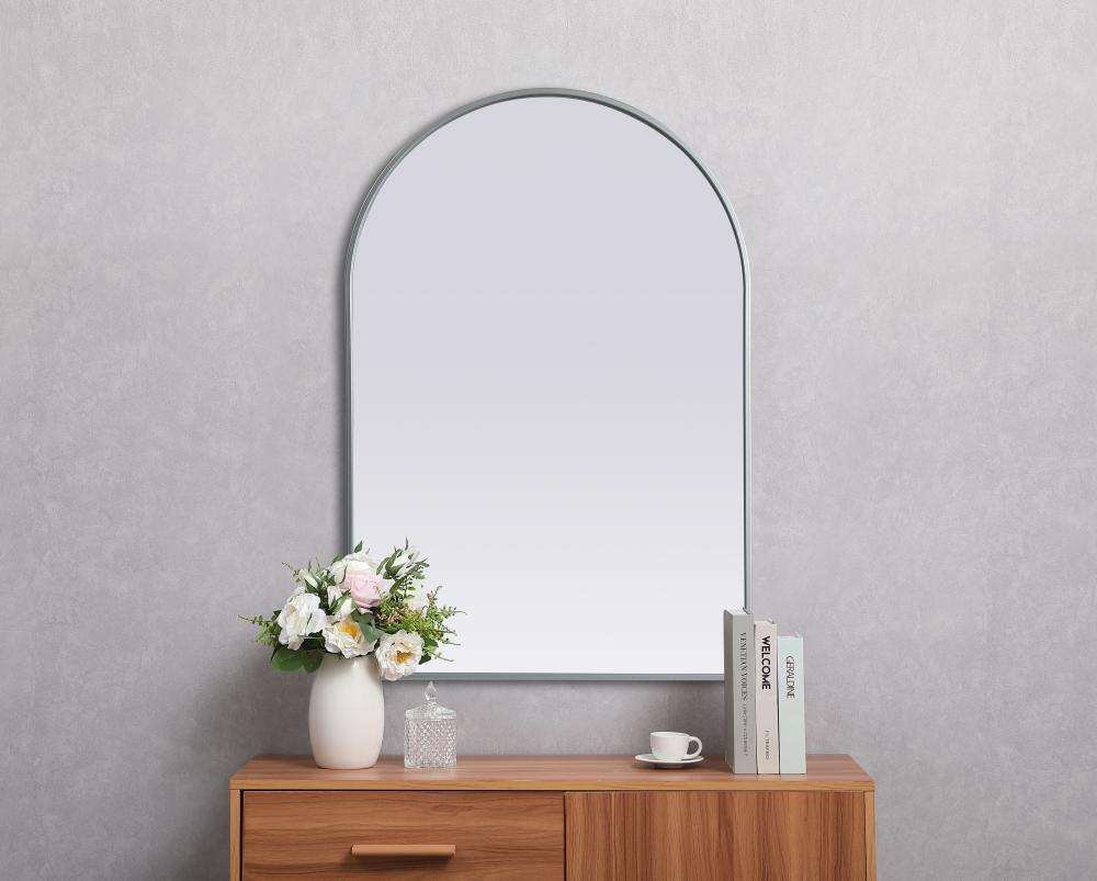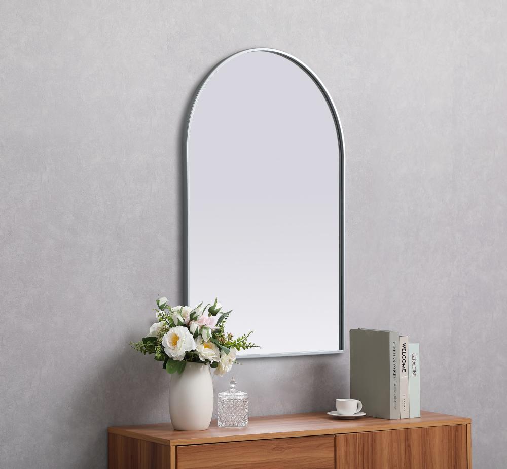 Instantly open up any space in your home with this minimalist wall-mounted mirror. Crafted of metal, this mirror strikes a round silhouette. Its slender, clean-lined frame sports a classic finish, while the glass mirror within features a flat, for a brilliant reflection, letting the light bounce off to expand your space. Designed in an arch shape, this metal-frame mirror showcases in the three available satin finishes in black, brass, or silver. Mount this work of art in any room of your choice for added visual impact.