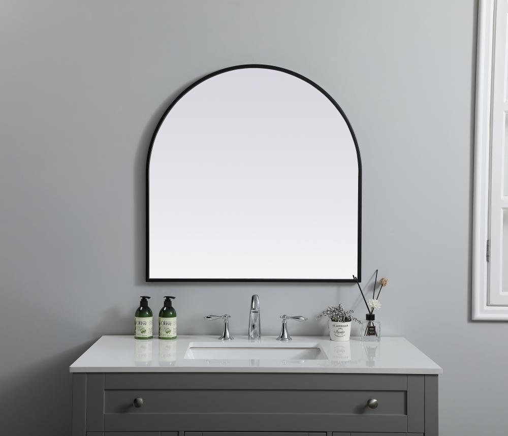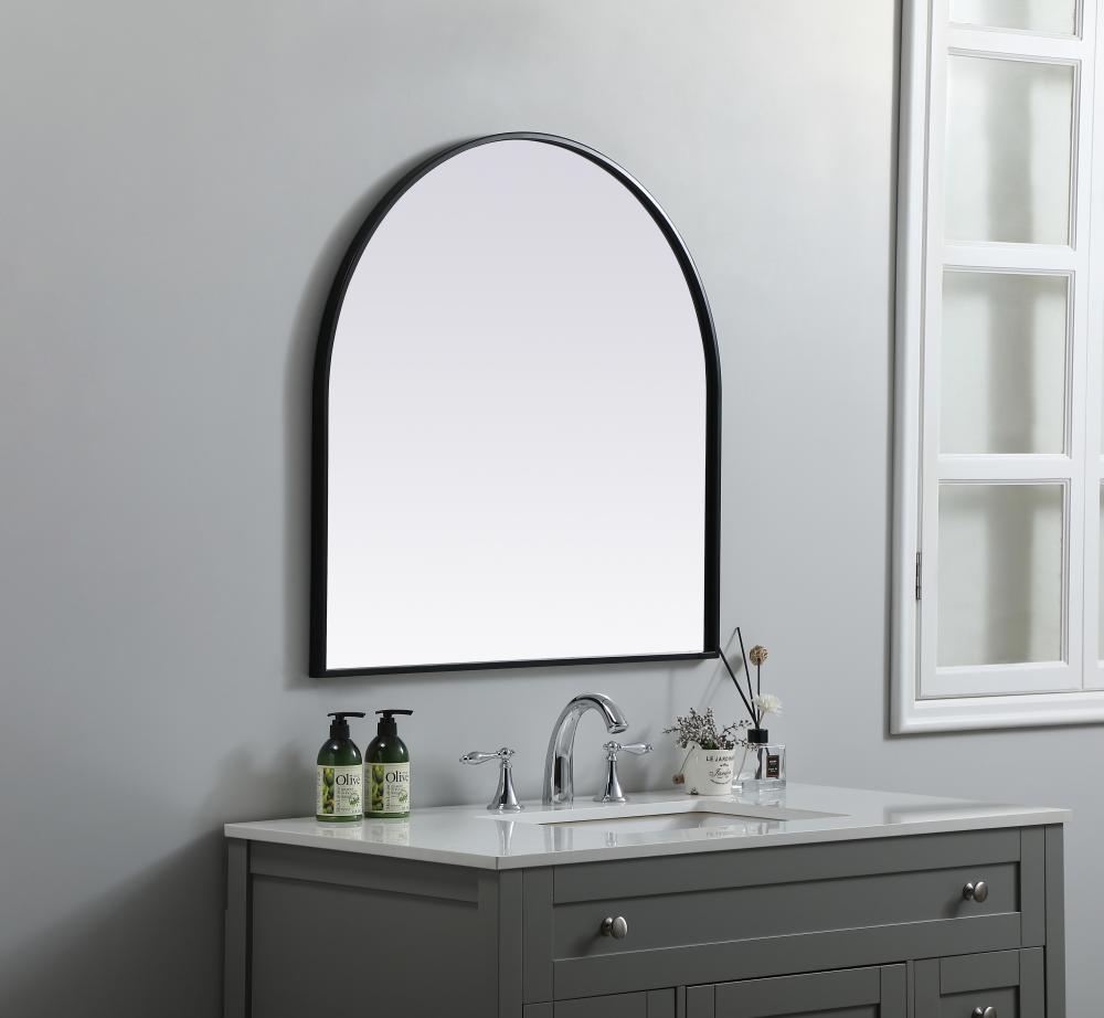 Metal Frame Arch Mirror 30x30 Inch in Black