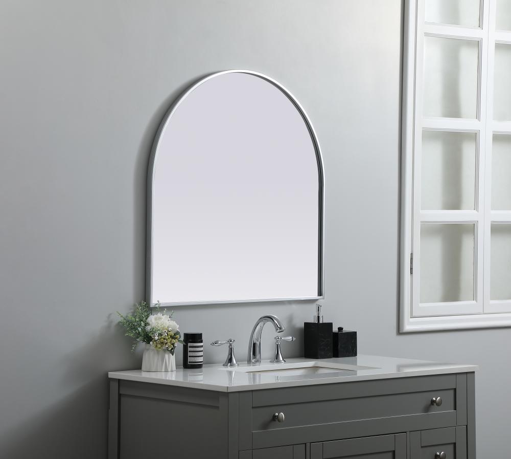 Instantly open up any space in your home with this minimalist wall-mounted mirror. Crafted of metal, this mirror strikes a round silhouette. Its slender, clean-lined frame sports a classic finish, while the glass mirror within features a flat, for a brilliant reflection, letting the light bounce off to expand your space. Designed in an arch shape, this metal-frame mirror showcases in the three available satin finishes in black, brass, or silver. Mount this work of art in any room of your choice for added visual impact.