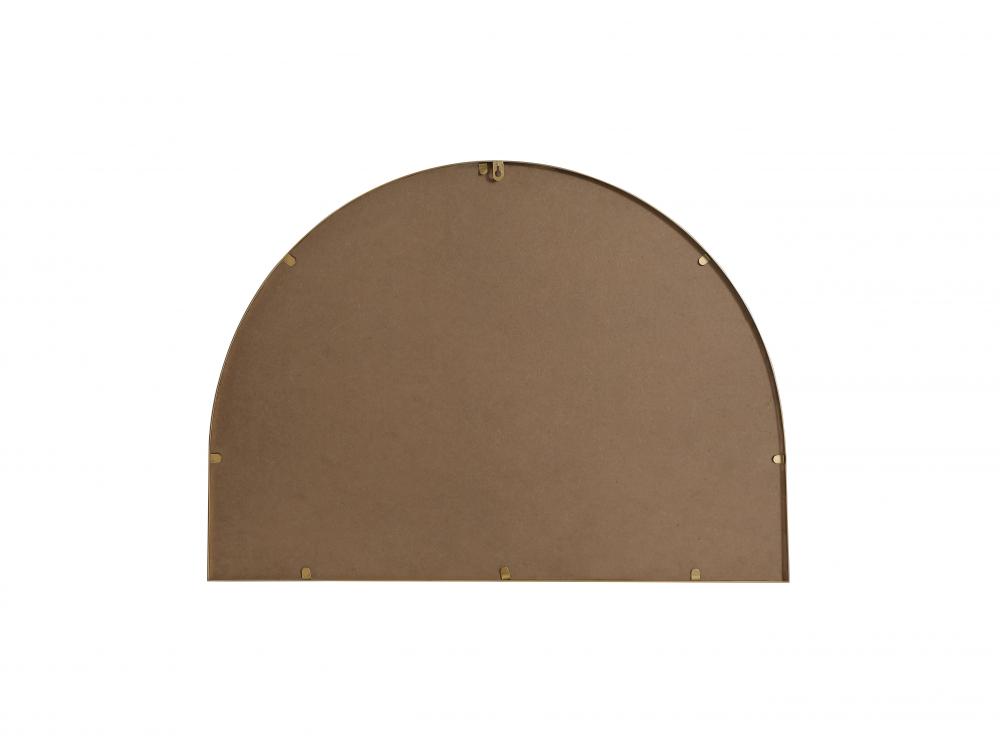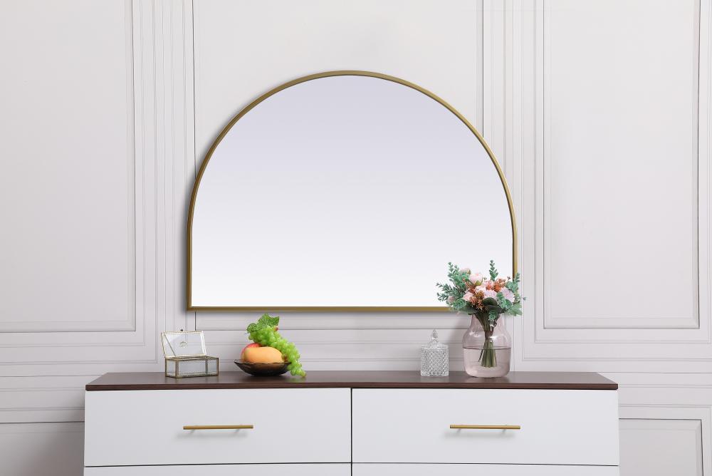 Instantly open up any space in your home with this minimalist wall-mounted mirror. Crafted of metal, this mirror strikes a round silhouette. Its slender, clean-lined frame sports a classic finish, while the glass mirror within features a flat, for a brilliant reflection, letting the light bounce off to expand your space. Designed in an arch shape, this metal-frame mirror showcases in the three available satin finishes in black, brass, or silver. Mount this work of art in any room of your choice for added visual impact.