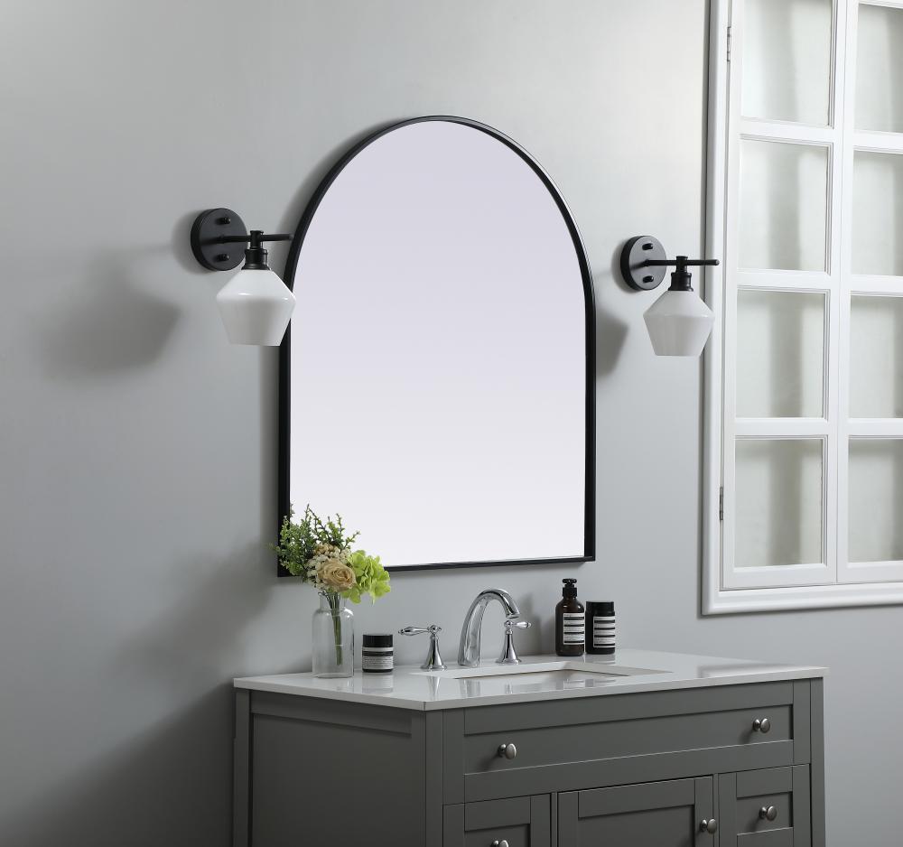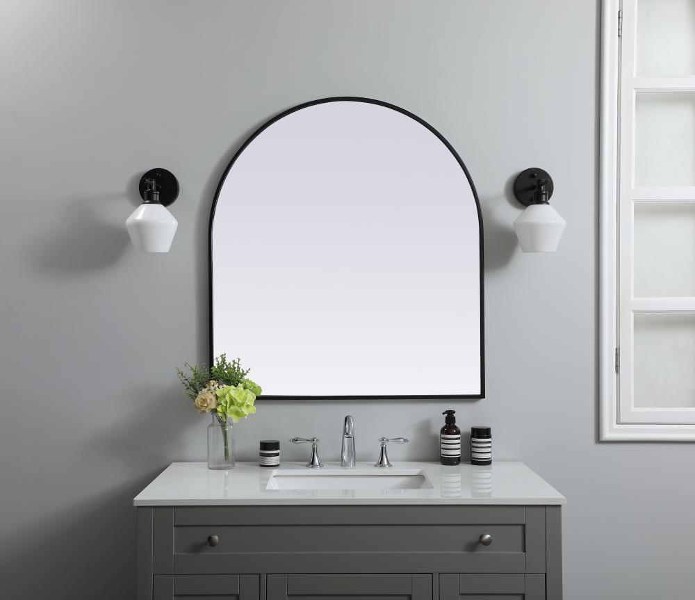 Metal Frame Arch Mirror 33x36 Inch in Black