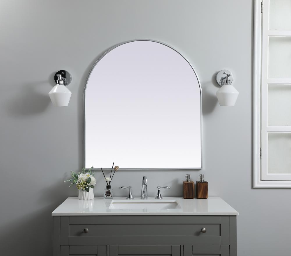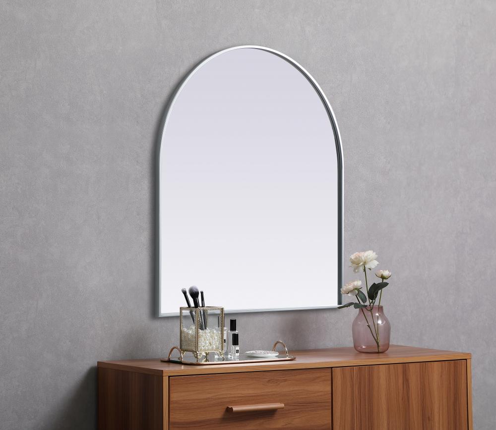 Metal Frame Arch Mirror 33x36 Inch in Silver