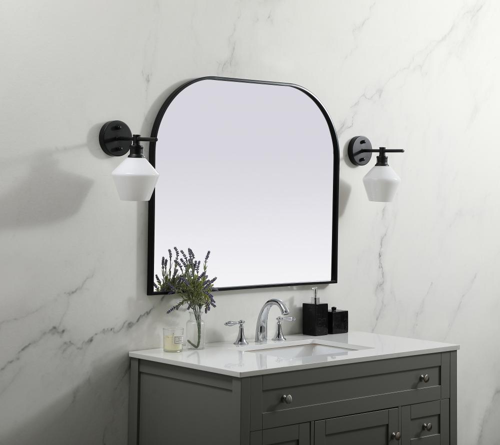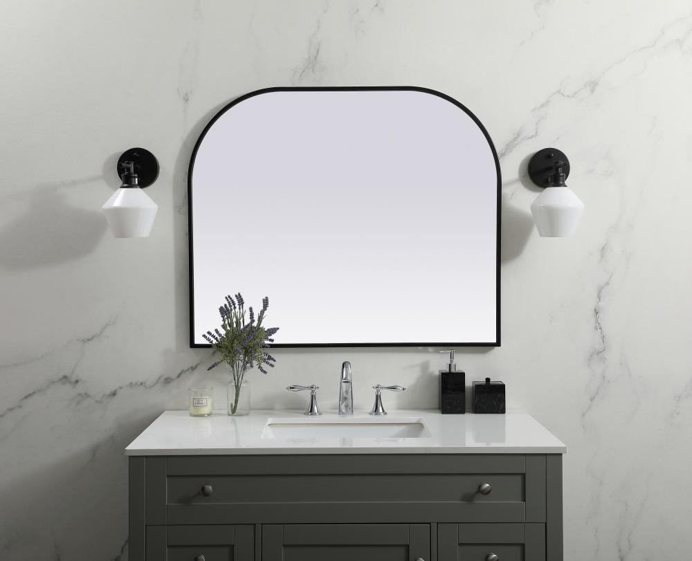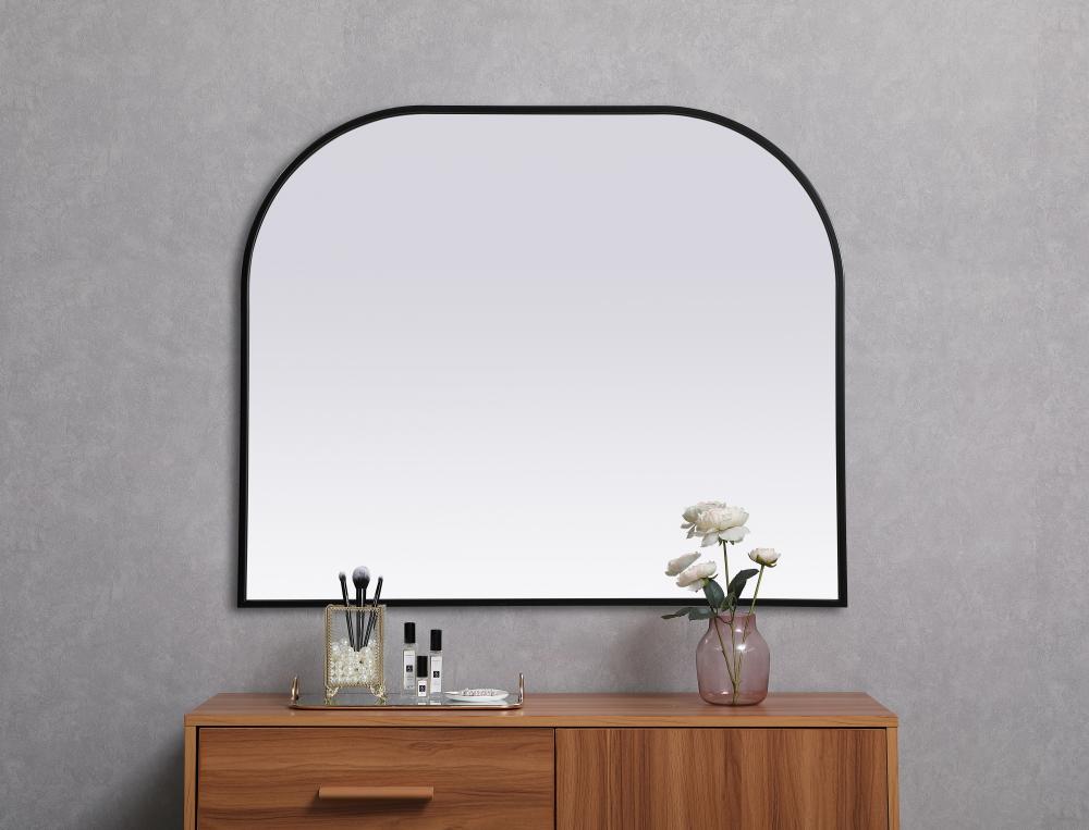 Metal Frame Arch Mirror 36x30 Inch in Black