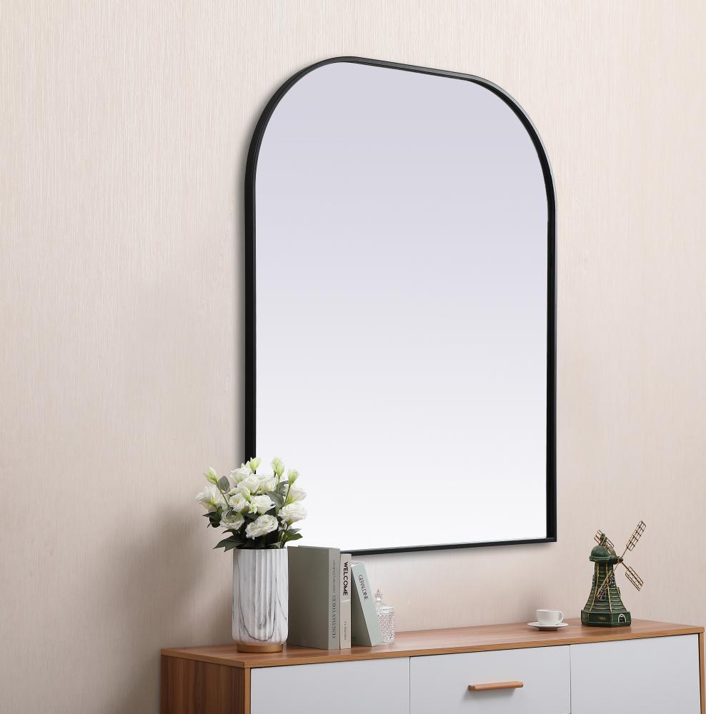 Over the mantel mirror serves an ideal décor on the mantel because it acts as an anchor piece that you can accentuate around with smaller accessories. The reflective qualities of the mirror can also make a space look bigger and brighter since it bounces light coming from your light sources. Designed with square bottom edges and rounded top, this mirror gives an unexpected twist to your typical mirror look. Select from three satin finishes in black, brass, or silver.
