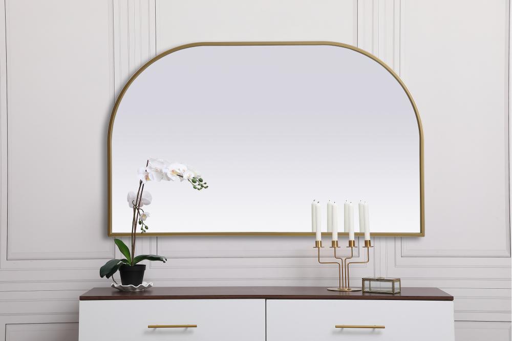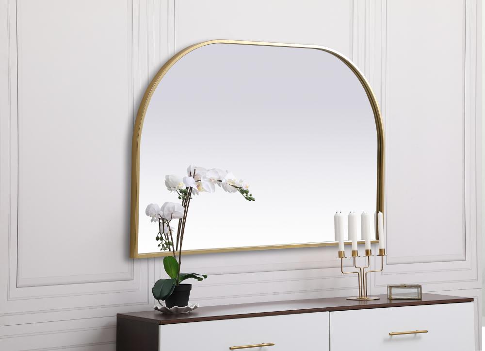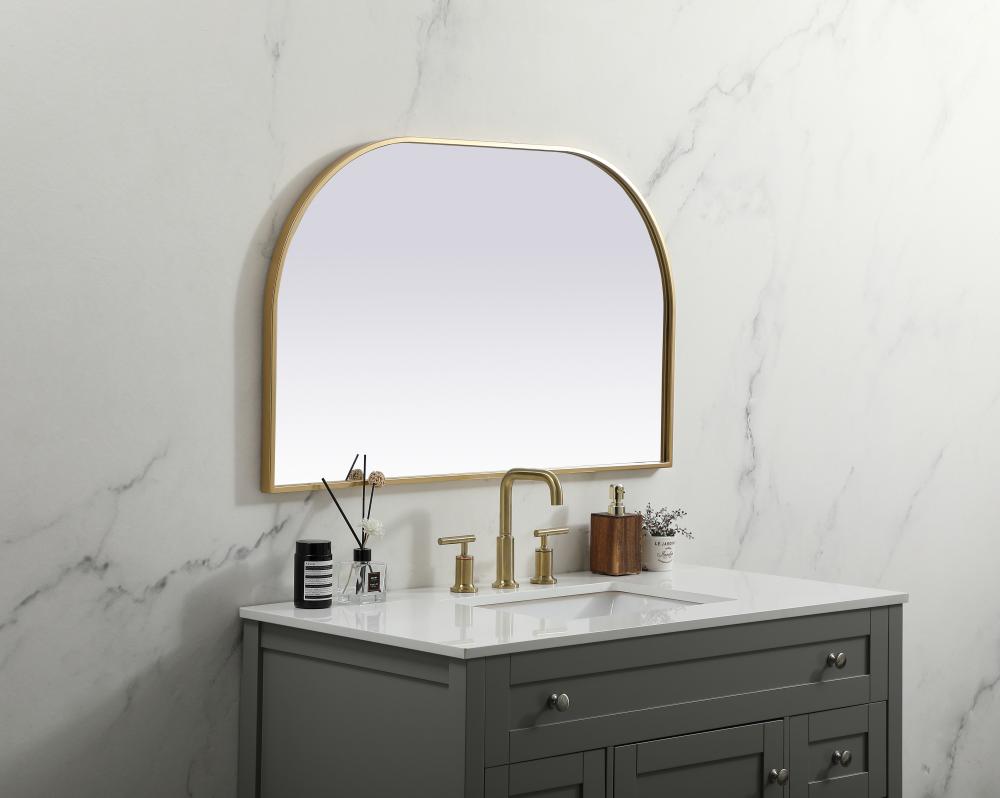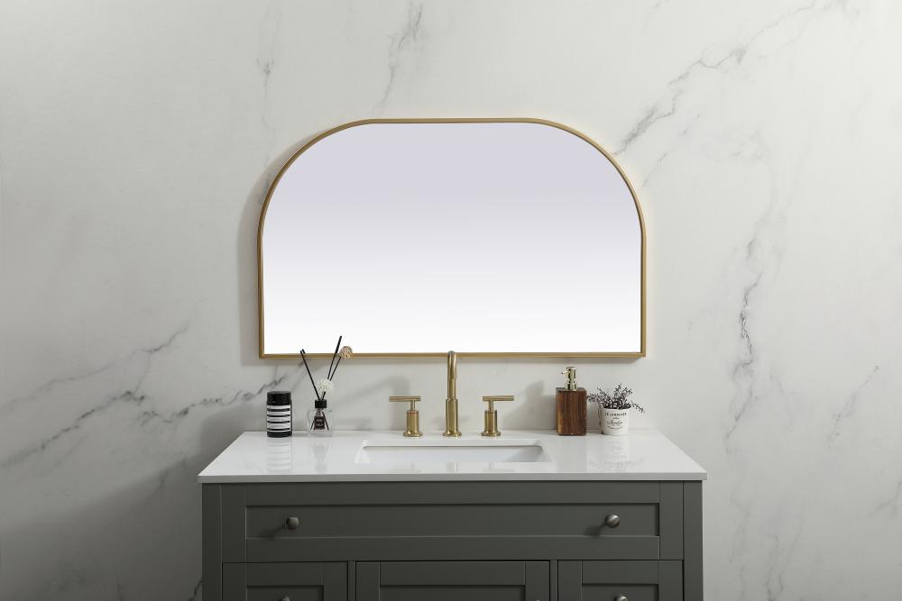 Metal Frame Arch Mirror 39x24 Inch in Brass
