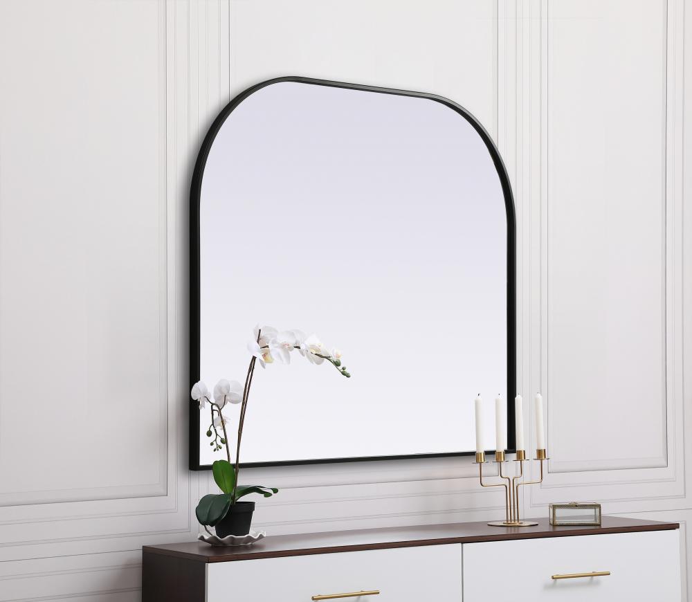 Over the mantel mirror serves an ideal décor on the mantel because it acts as an anchor piece that you can accentuate around with smaller accessories. The reflective qualities of the mirror can also make a space look bigger and brighter since it bounces light coming from your light sources. Designed with square bottom edges and rounded top, this mirror gives an unexpected twist to your typical mirror look. Select from three satin finishes in black, brass, or silver.