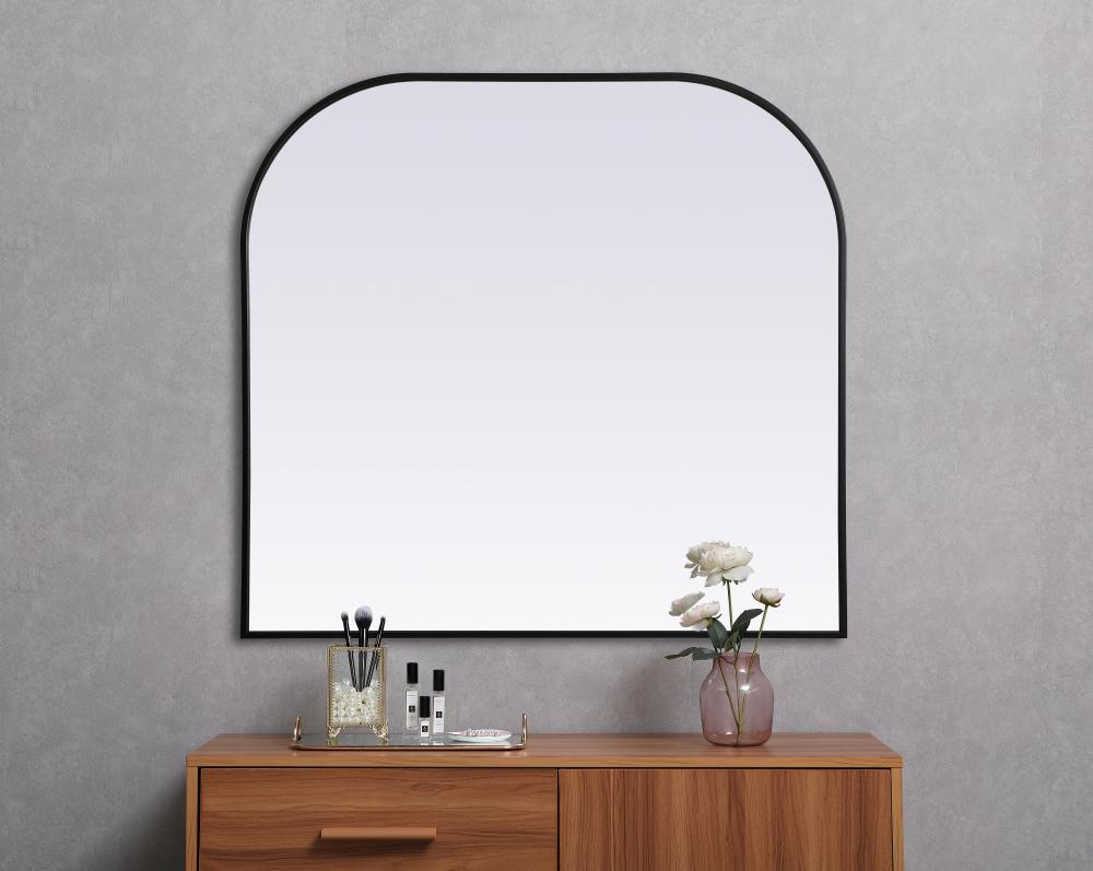 Metal Frame Arch Mirror 40x38 Inch in Black