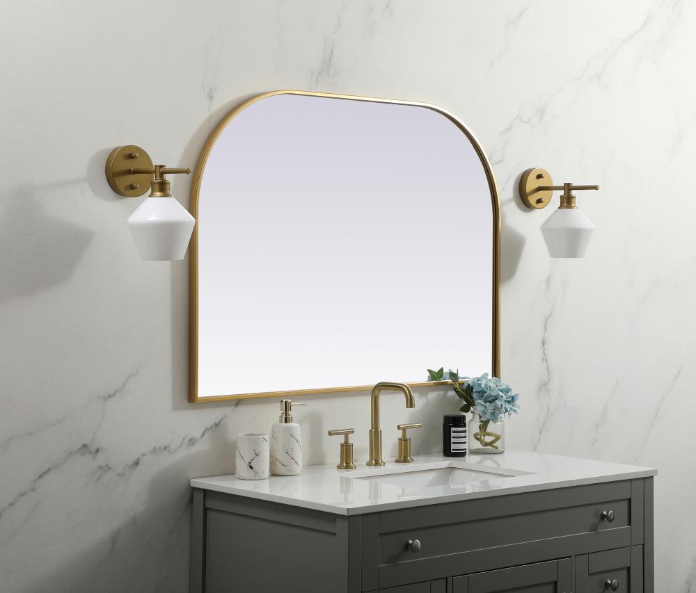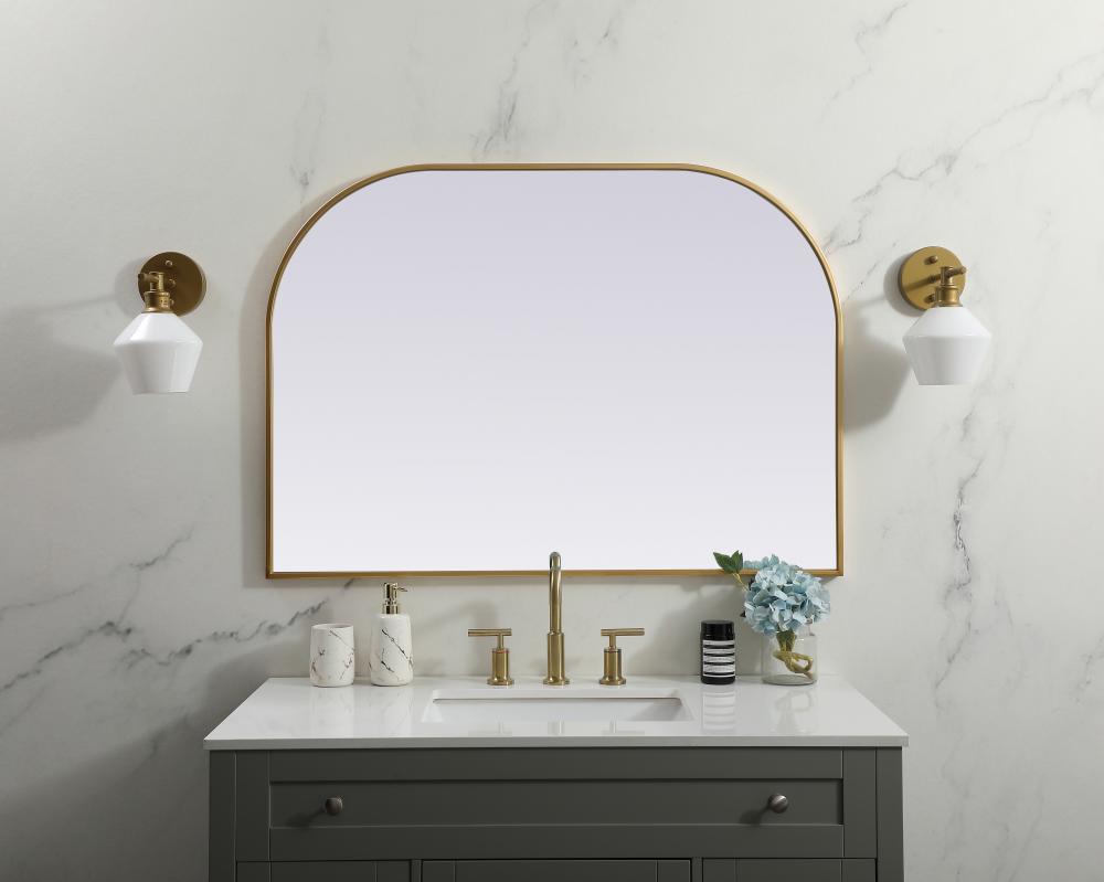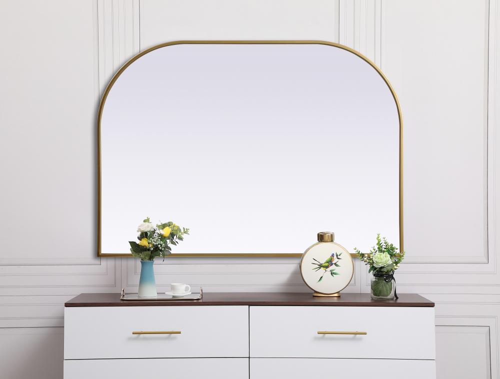 Metal Frame Arch Mirror 42x30 Inch in Brass