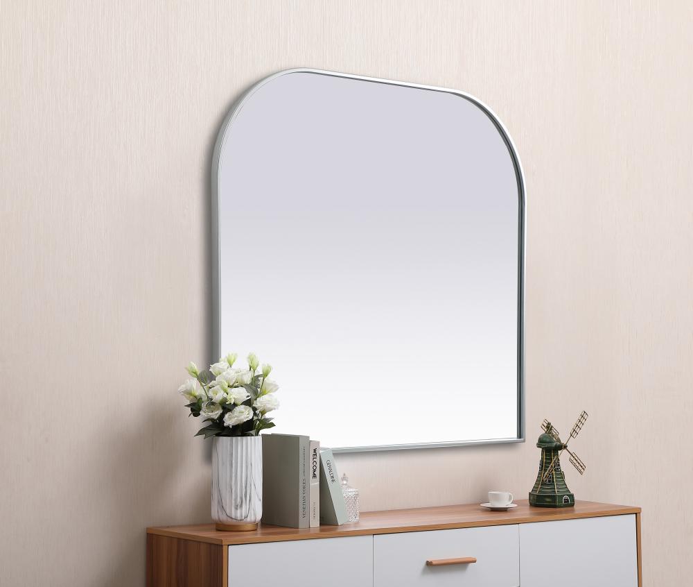 Metal Frame Arch Mirror 42x38 Inch in Silver
