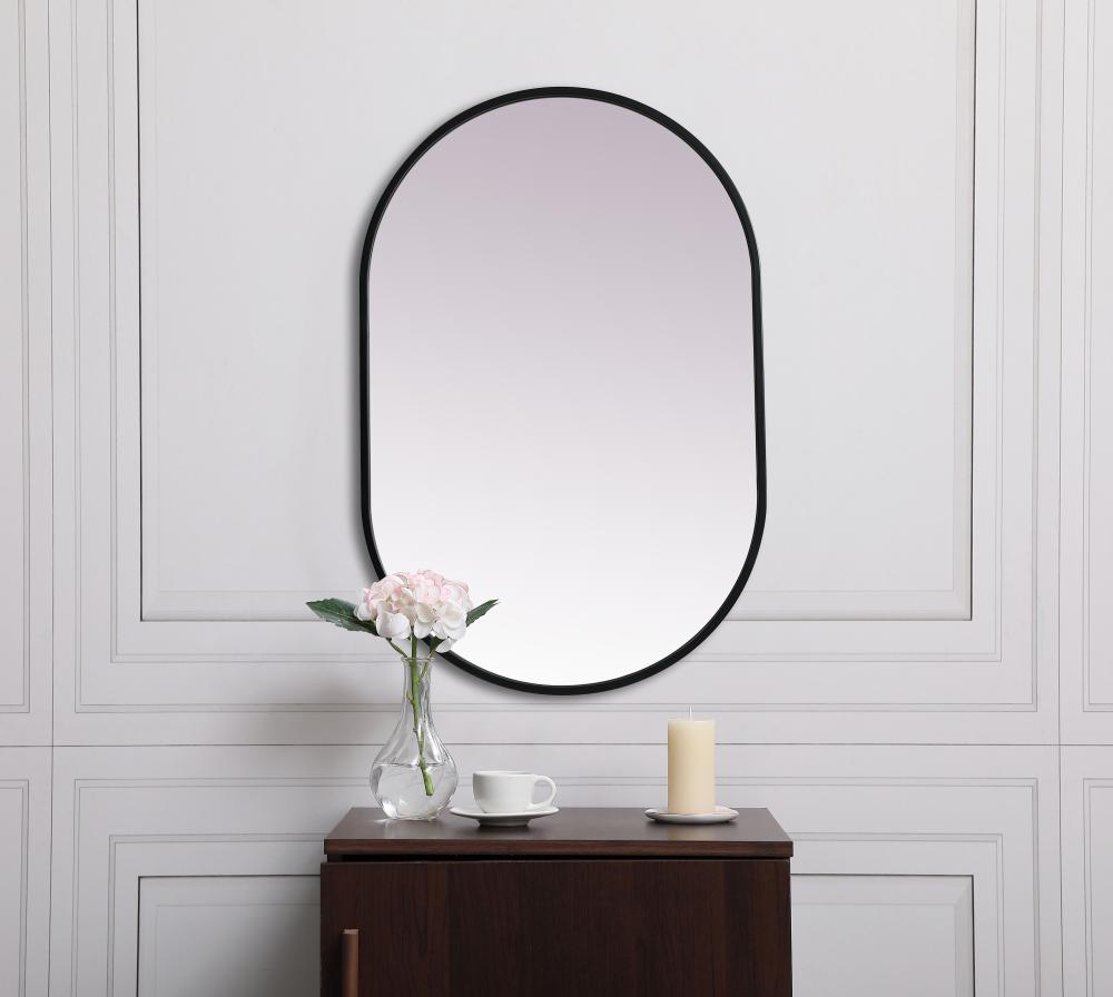 Metal Frame Oval Mirror 20x30 Inch in Black