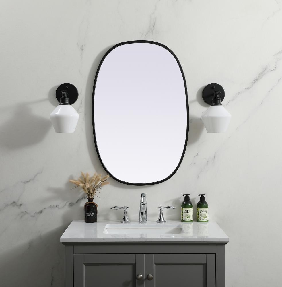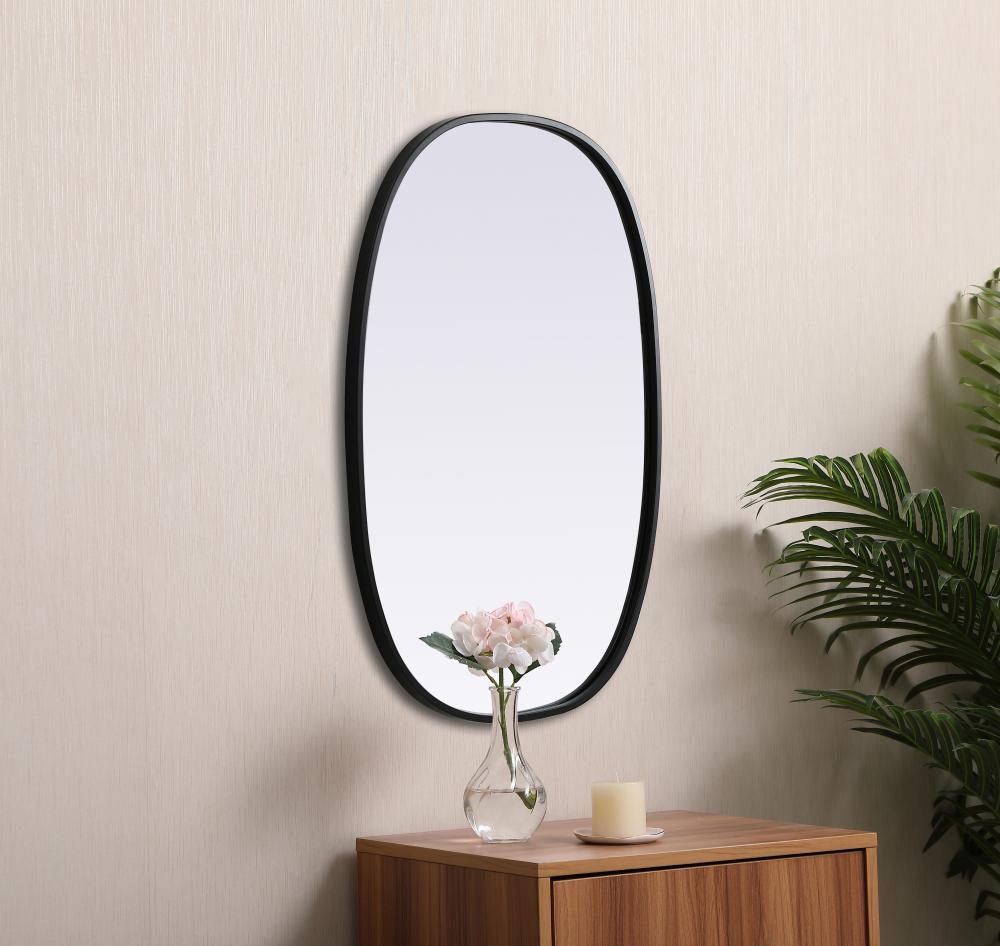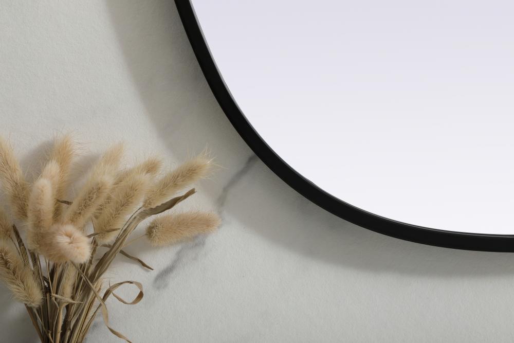 Crafted of metal, this mirror strikes a rounded corner silhouette. Instantly open up any space in your home with this minimalist wall-mounted mirror. Its slender, clean-lined frame sports a classic finish, while the glass mirror within features a flat, for a brilliant reflection, letting the light bounce off to expand your space. Designed in an oblong shape, this metal-frame mirror showcases in the three available satin finishes in black, brass, or silver. Mount this work of art in any room of your choice for added visual impact.
