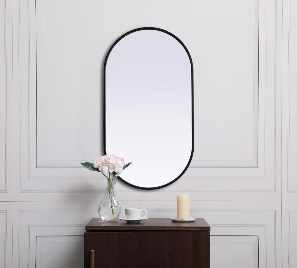 Metal Frame Oval Mirror 20x36 Inch in Black