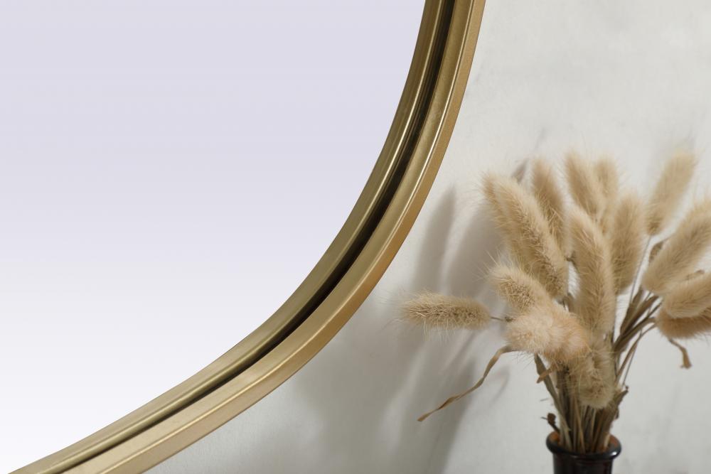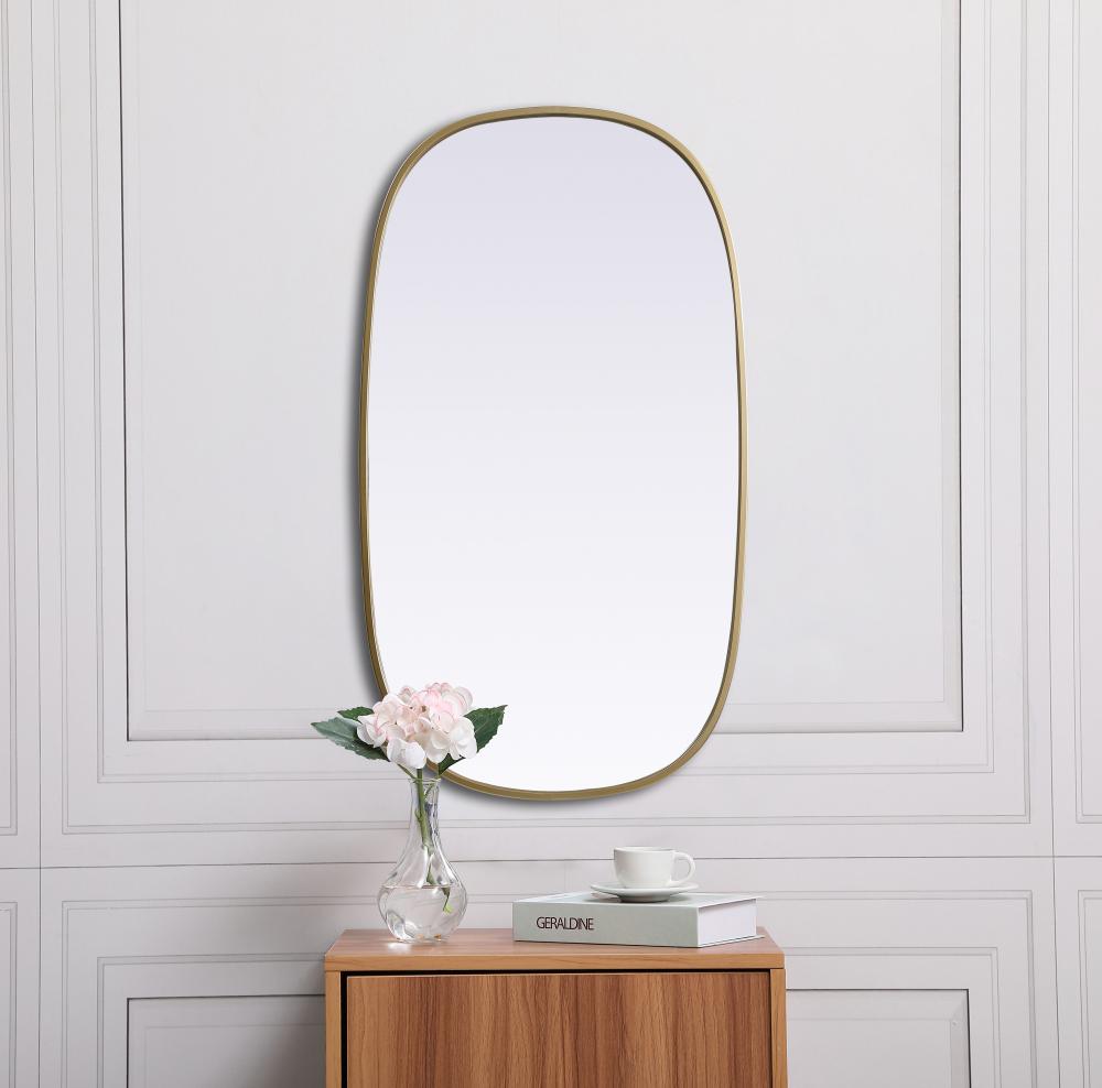 Crafted of metal, this mirror strikes a rounded corner silhouette. Instantly open up any space in your home with this minimalist wall-mounted mirror. Its slender, clean-lined frame sports a classic finish, while the glass mirror within features a flat, for a brilliant reflection, letting the light bounce off to expand your space. Designed in an oblong shape, this metal-frame mirror showcases in the three available satin finishes in black, brass, or silver. Mount this work of art in any room of your choice for added visual impact.